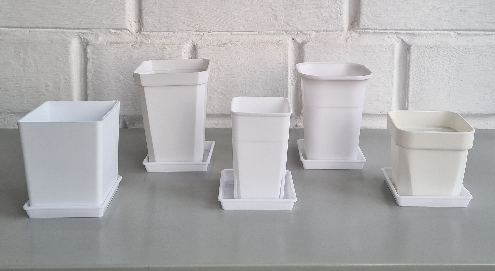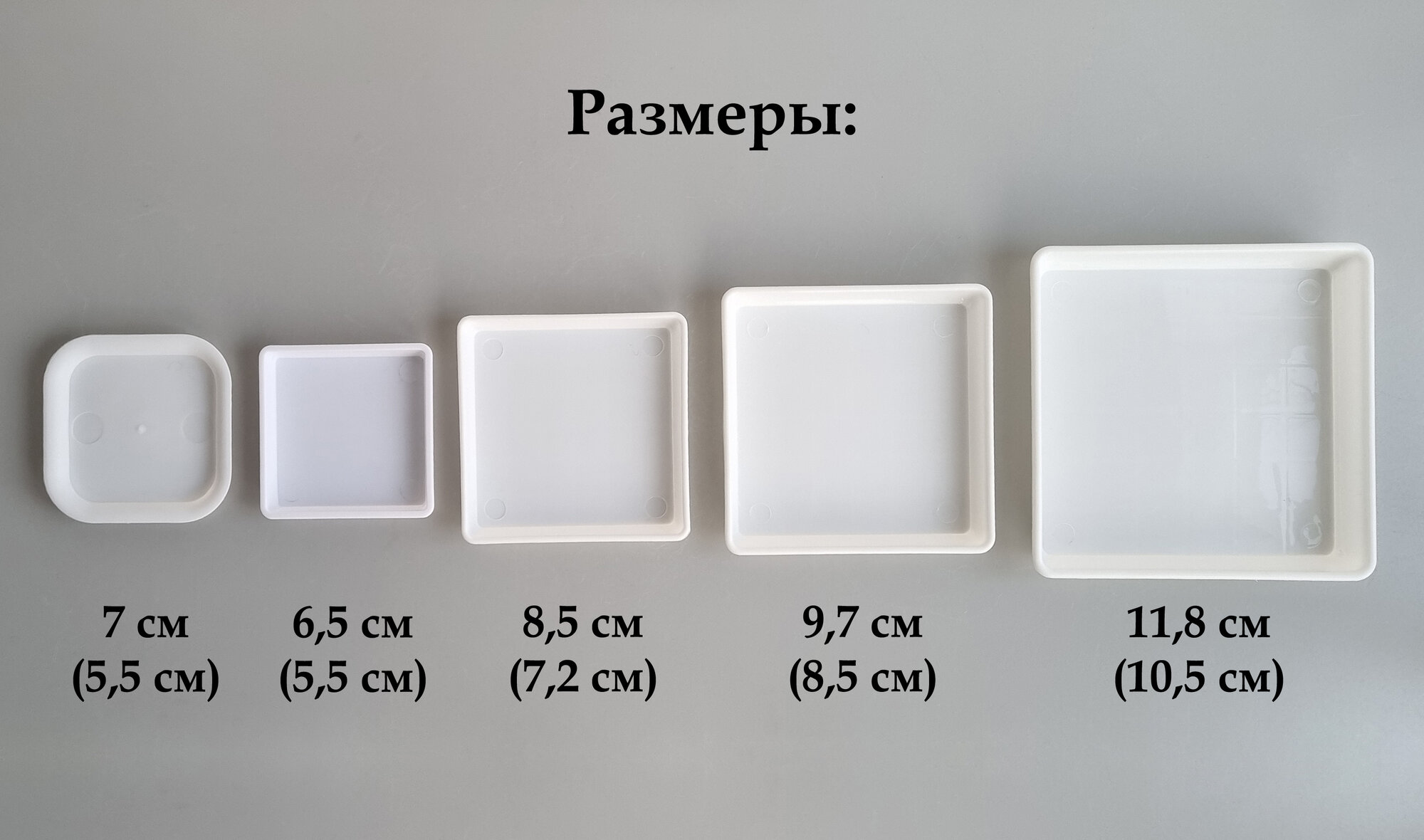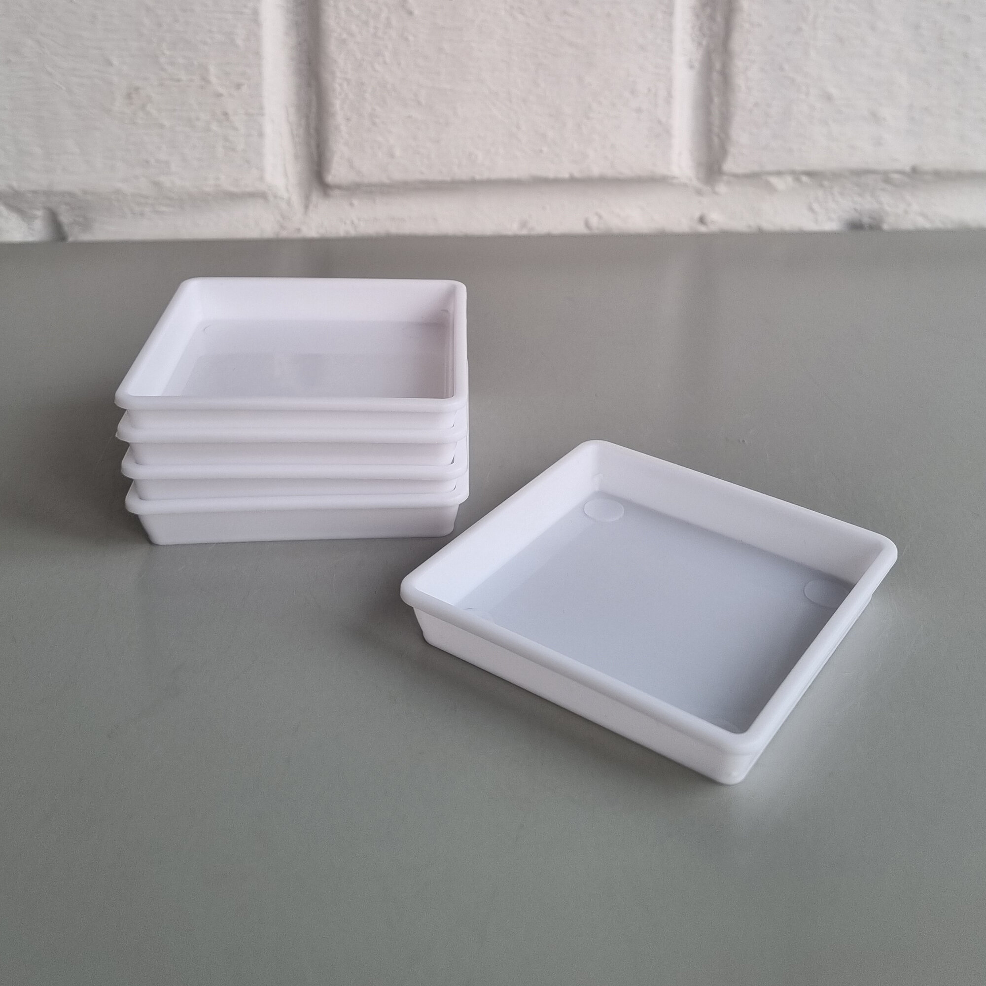 Квадратные поддоны для горшков, 9,7 х 9,7 см (внутр. 8,5 х 8,5 см). Белые. Набор из 5-ти штук