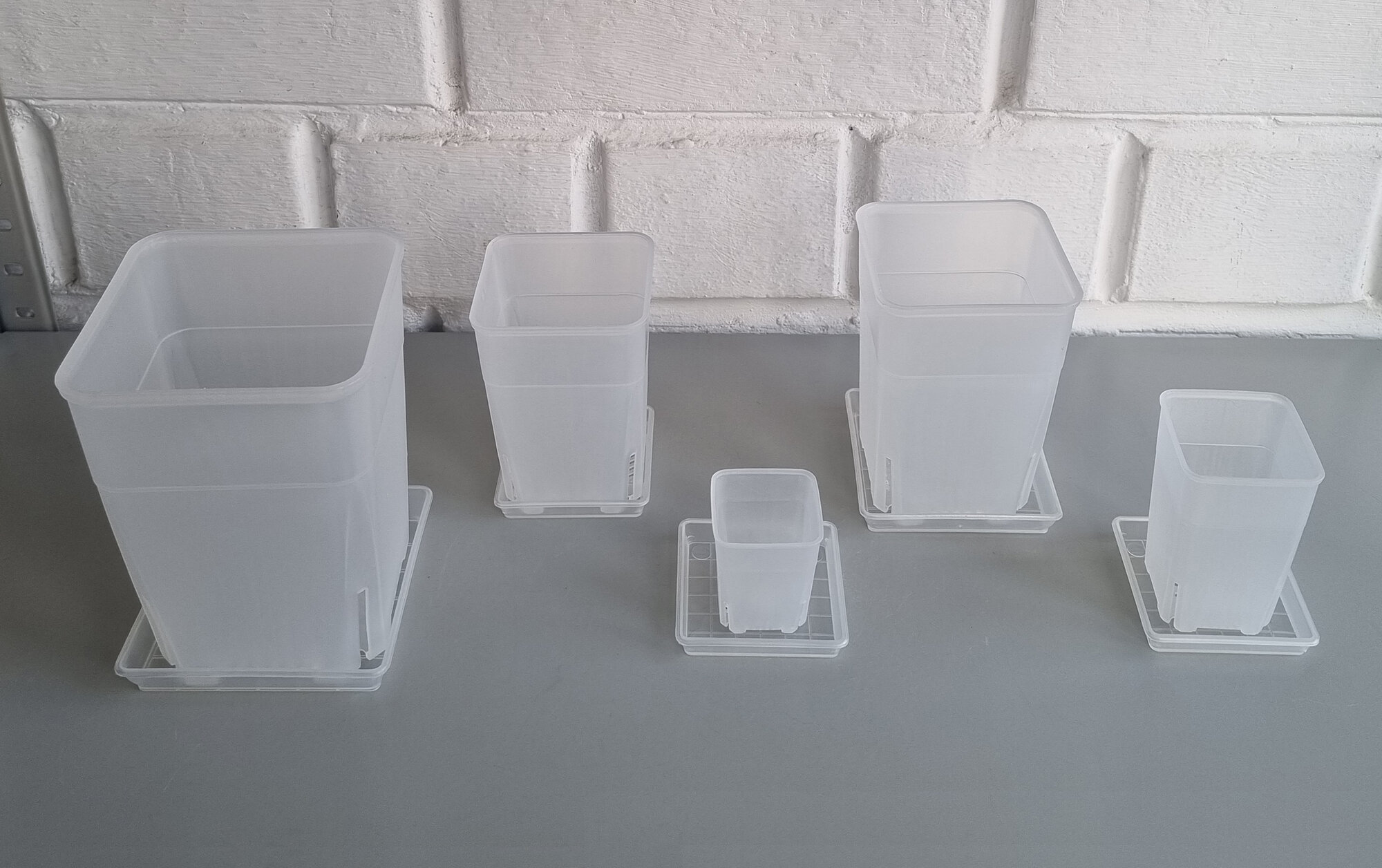 Квадратные поддоны для горшков, 9,7 х 9,7 см (внутр. 8,5 х 8,5 см). Прозрачные. Набор из 5-ти штук