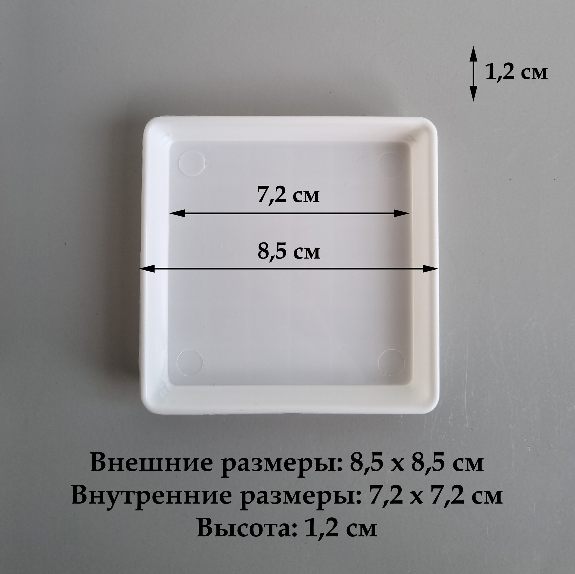 Квадратные поддоны для горшков, 8,5 х 8,5 см (внутр. 7,2 х 7,2 см). Белые. Набор из 10-ти штук
