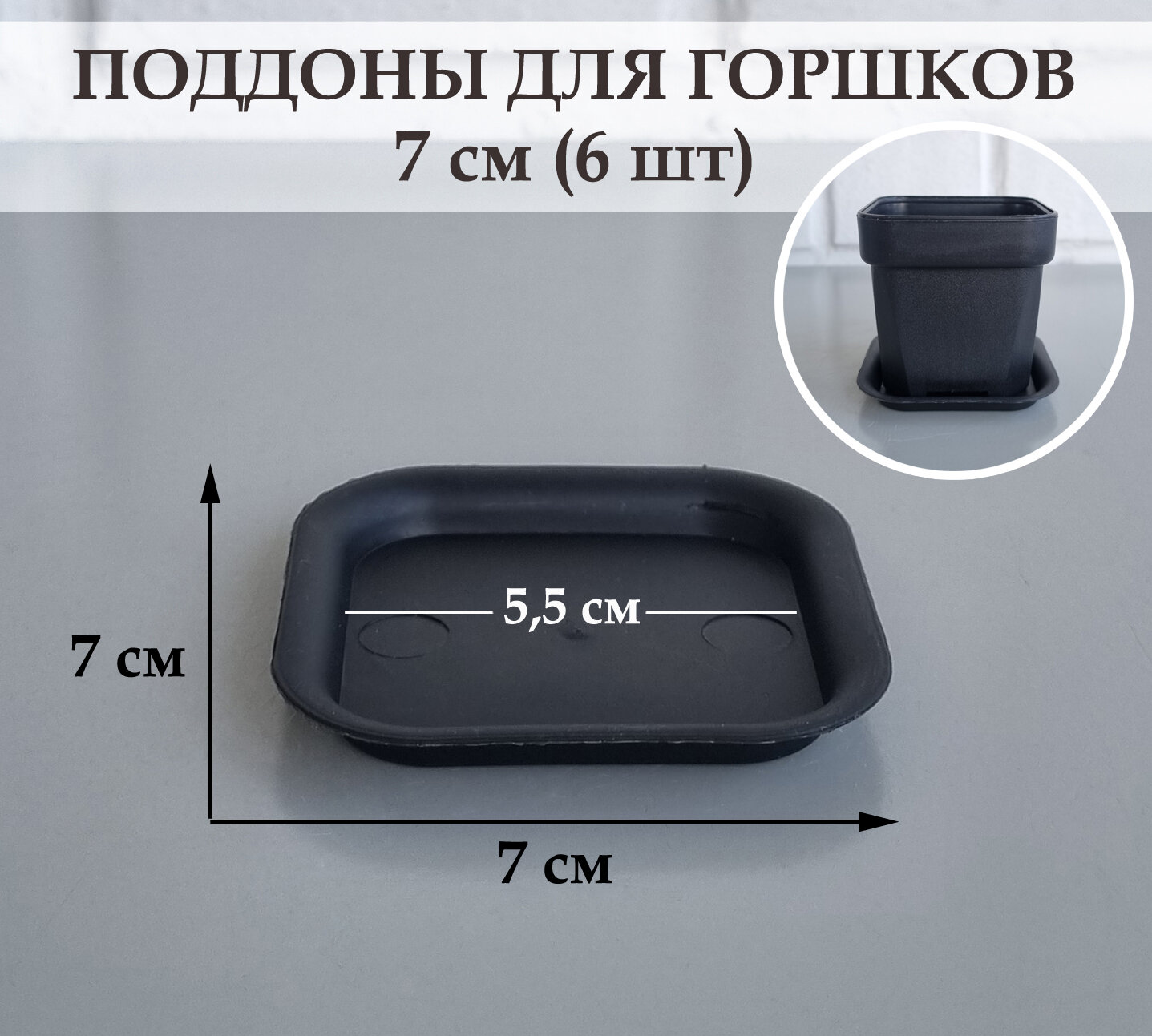 Купить Квадратные поддоны для горшков, 7 х 7 см (внутр. 5,5 х 5,5 см). Черные. Набор из 6-ти штук