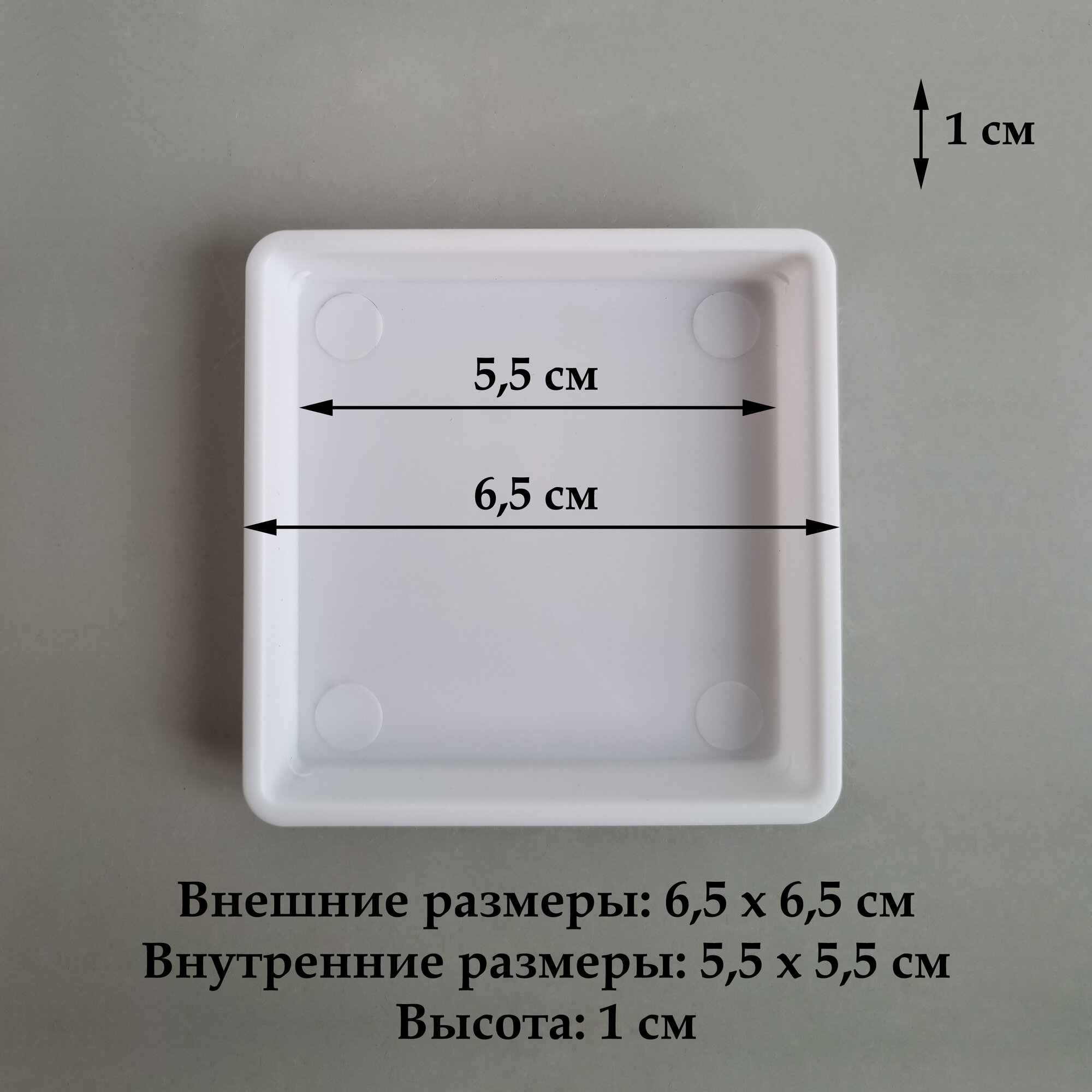 Квадратные поддоны для горшков, 6,5 х 6,5 см (внутр. 5,5 х 5,5 см). Белые. Набор из 5-ти штук