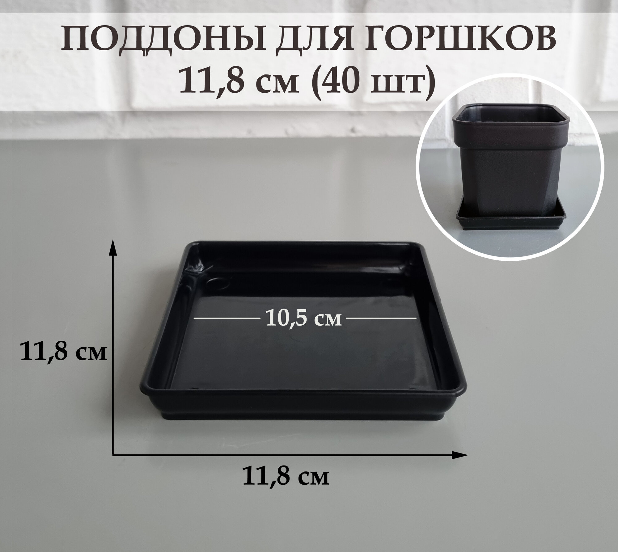 Купить Квадратные поддоны для горшков, 11,8 х 11,8 см (внутр. 10,5 х 10,5 см). Черные. Набор из 40 штук