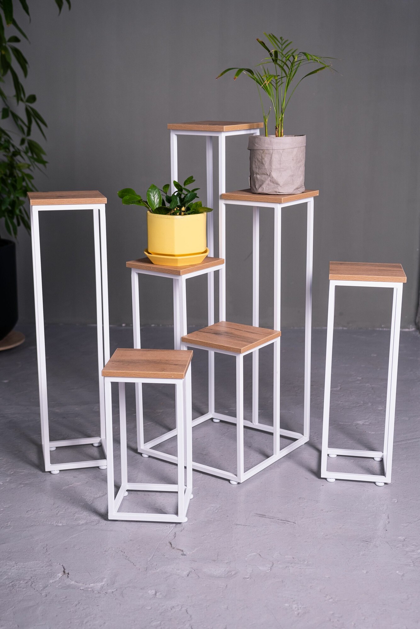 Подставка для цветов напольная металлическая лофт 60см белая, дуб вотан интересное: