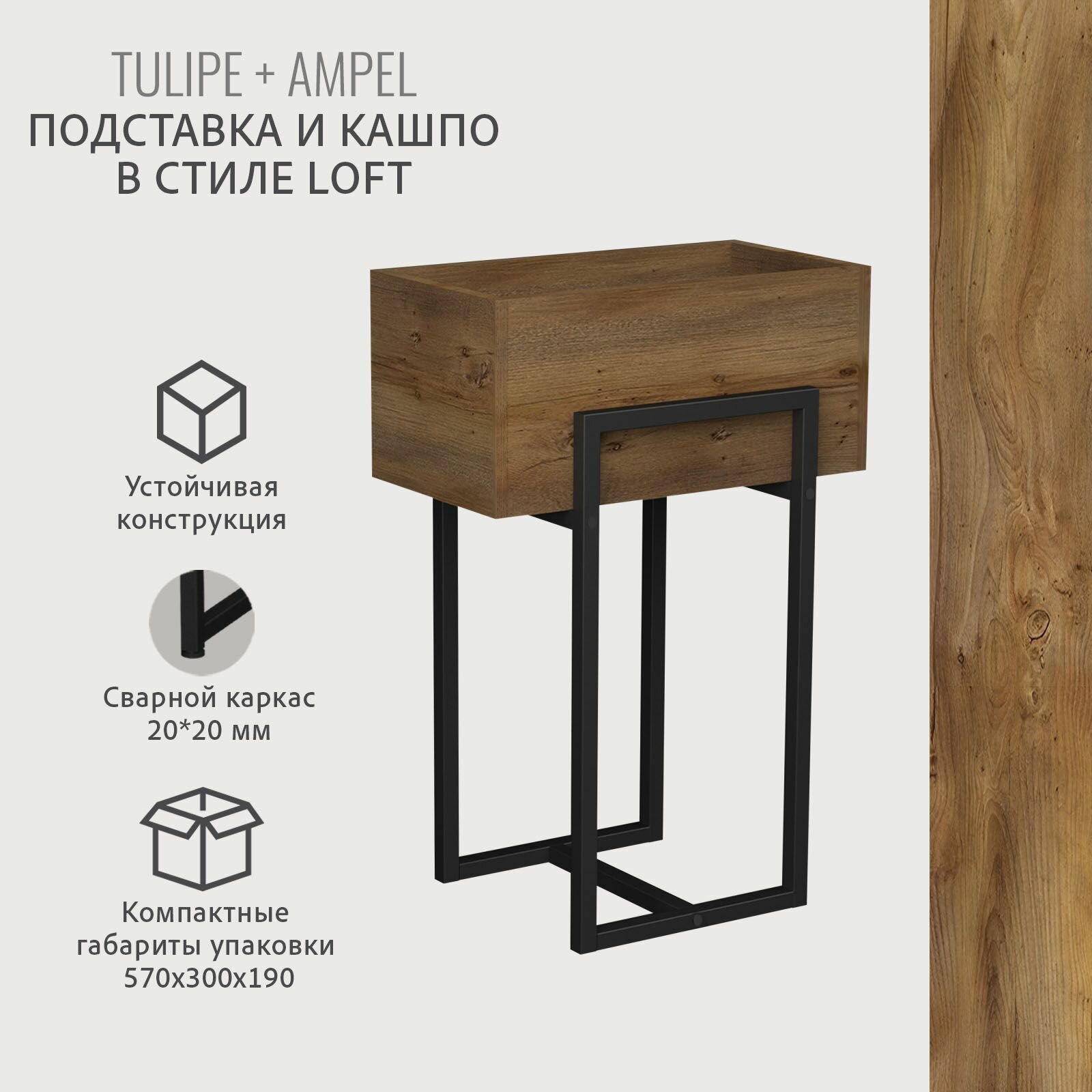 Кашпо напольное на ножках TULIPE loft, горшок для цветов, дуб вотан, 37.2*29*65.6 см, гростат