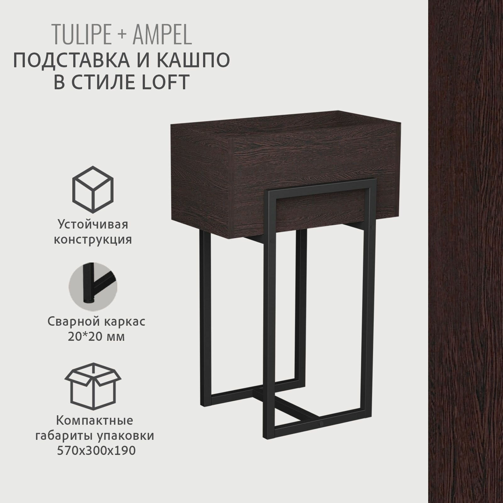 Кашпо напольное на ножках TULIPE loft, горшок для цветов, дуб вотан, 37.2*29*65.6 см, гростат
