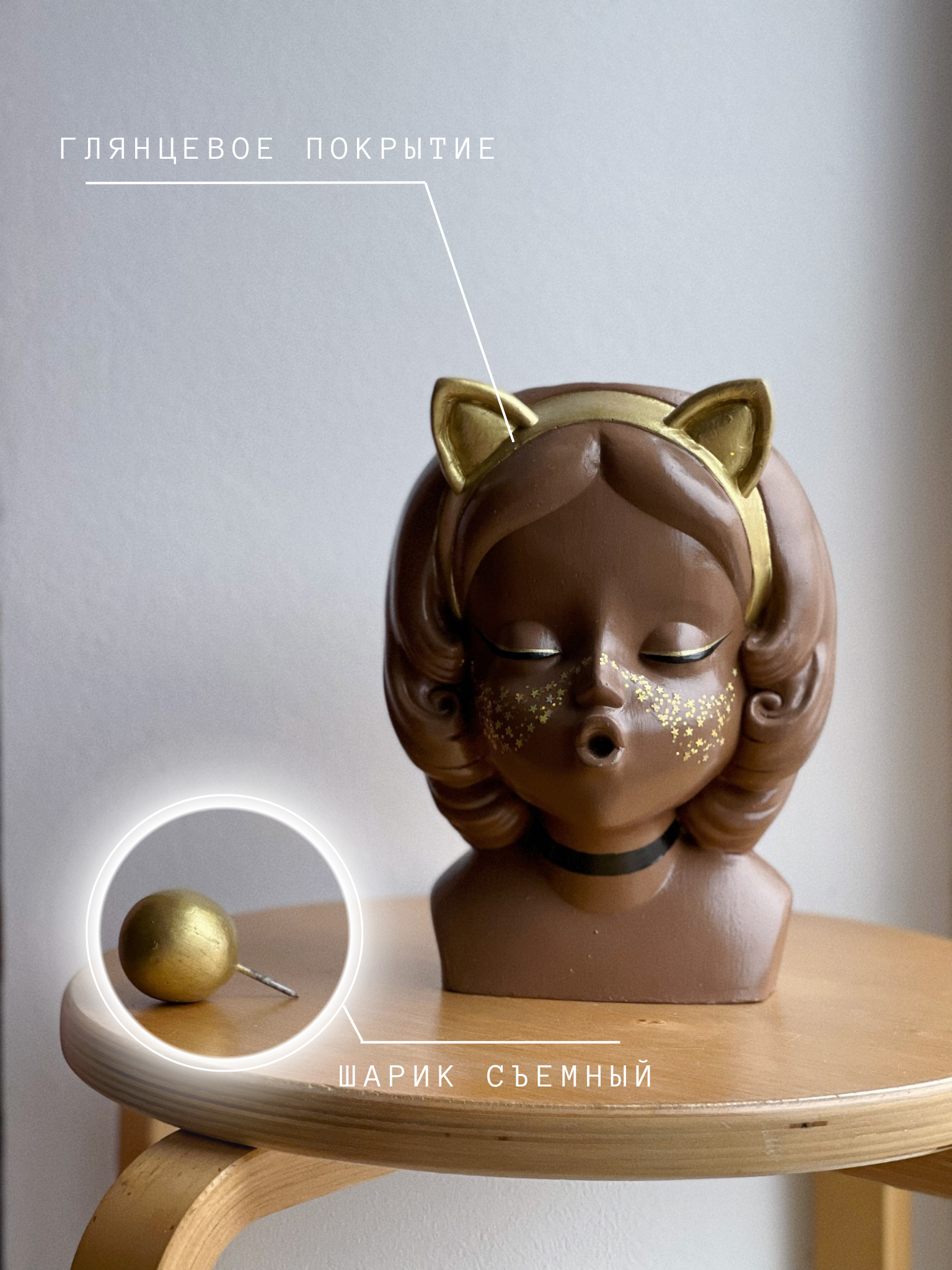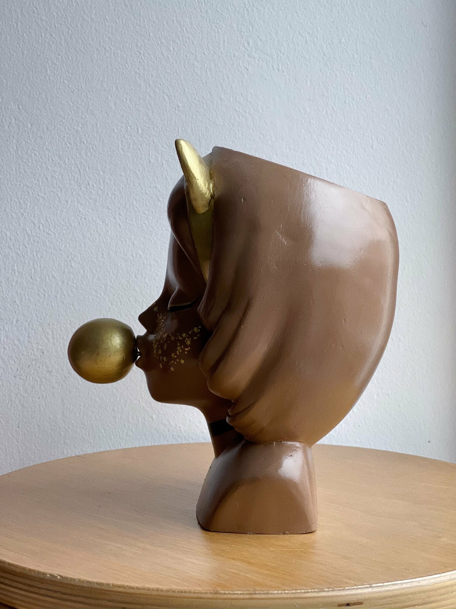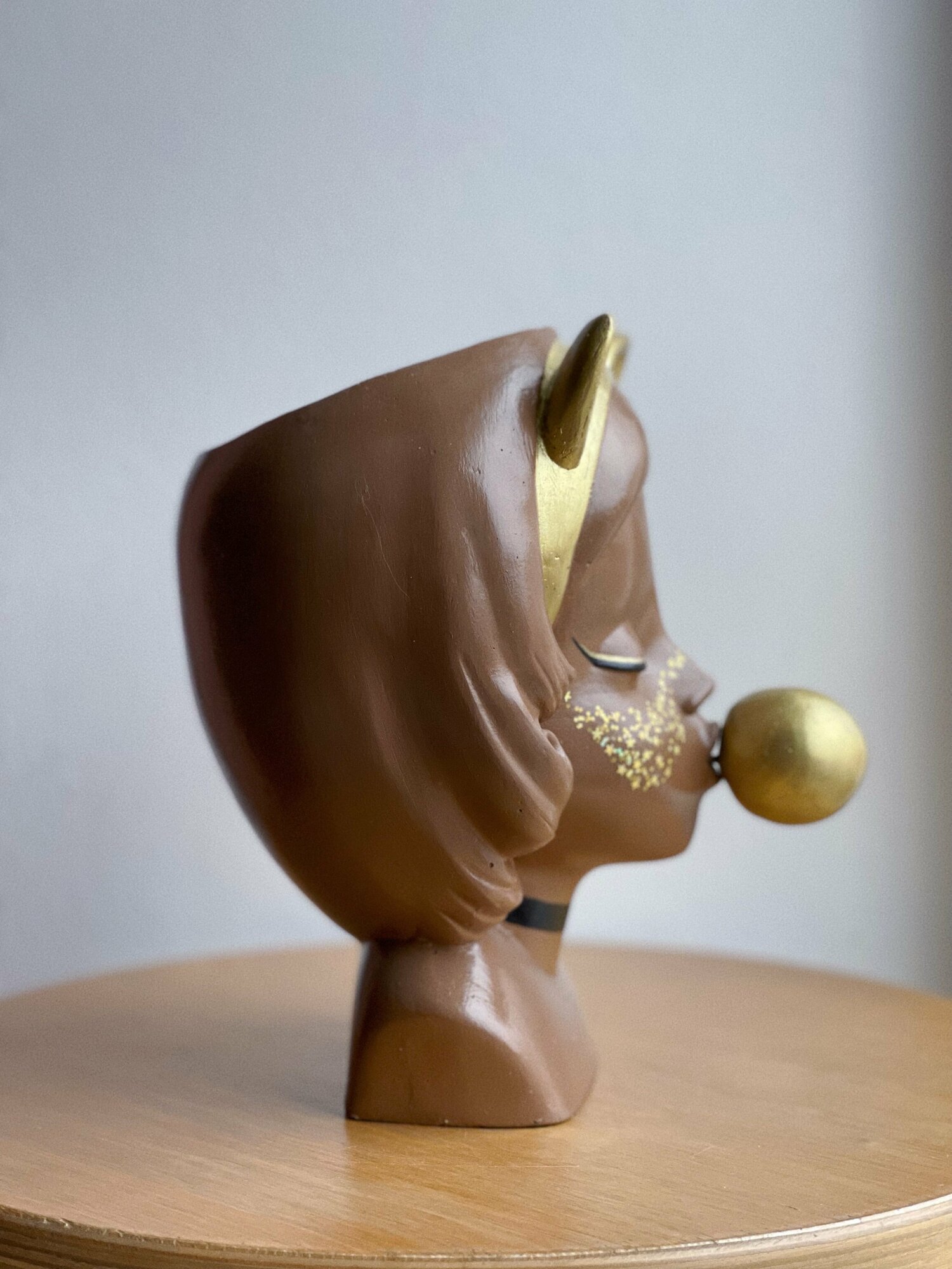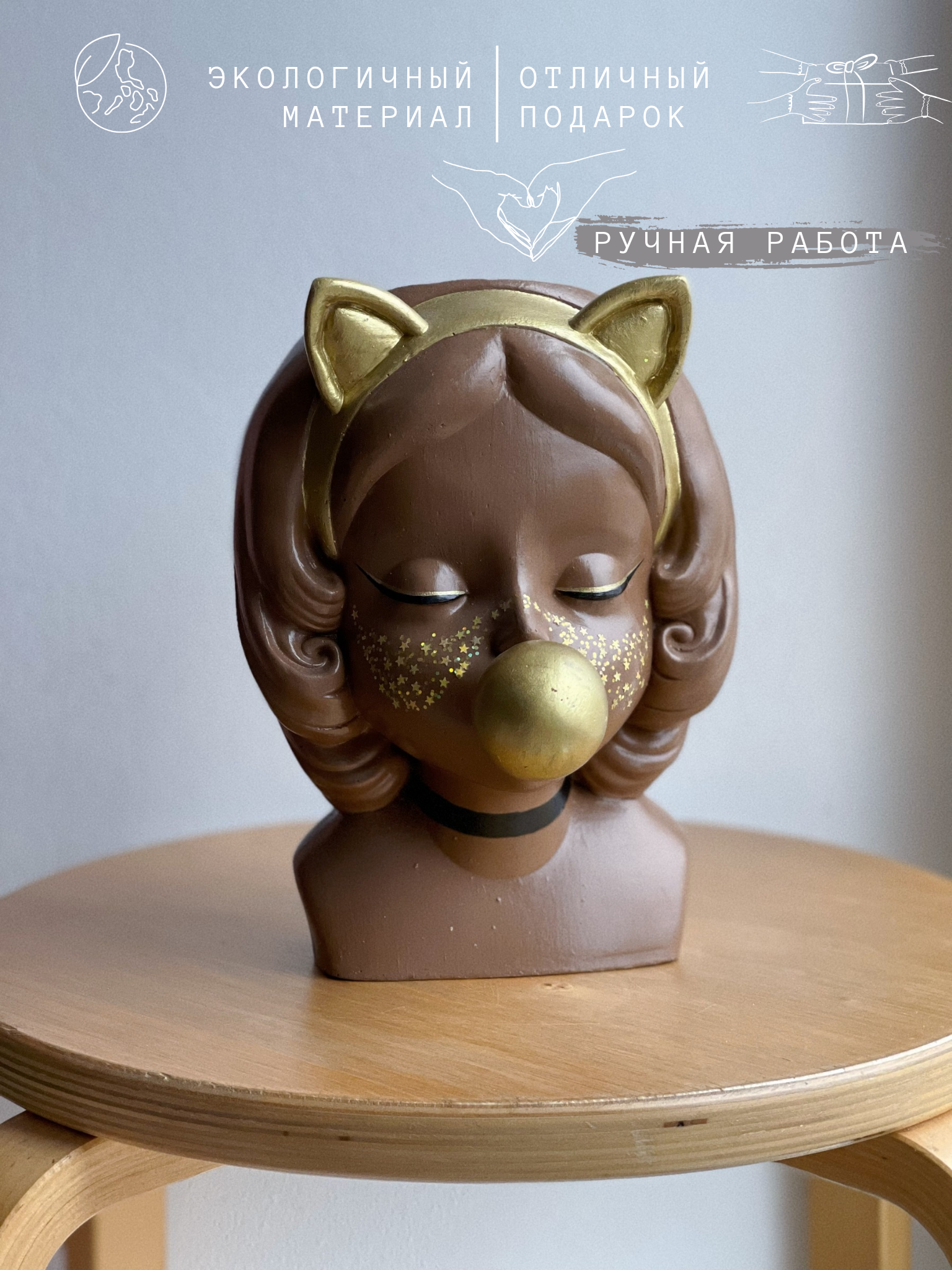 Купить Кашпо из гипса "Девочка с жвачкой", 22 см, цвет: коричнево-золотой / статуэтка / органайзер / Девочка с пузырем