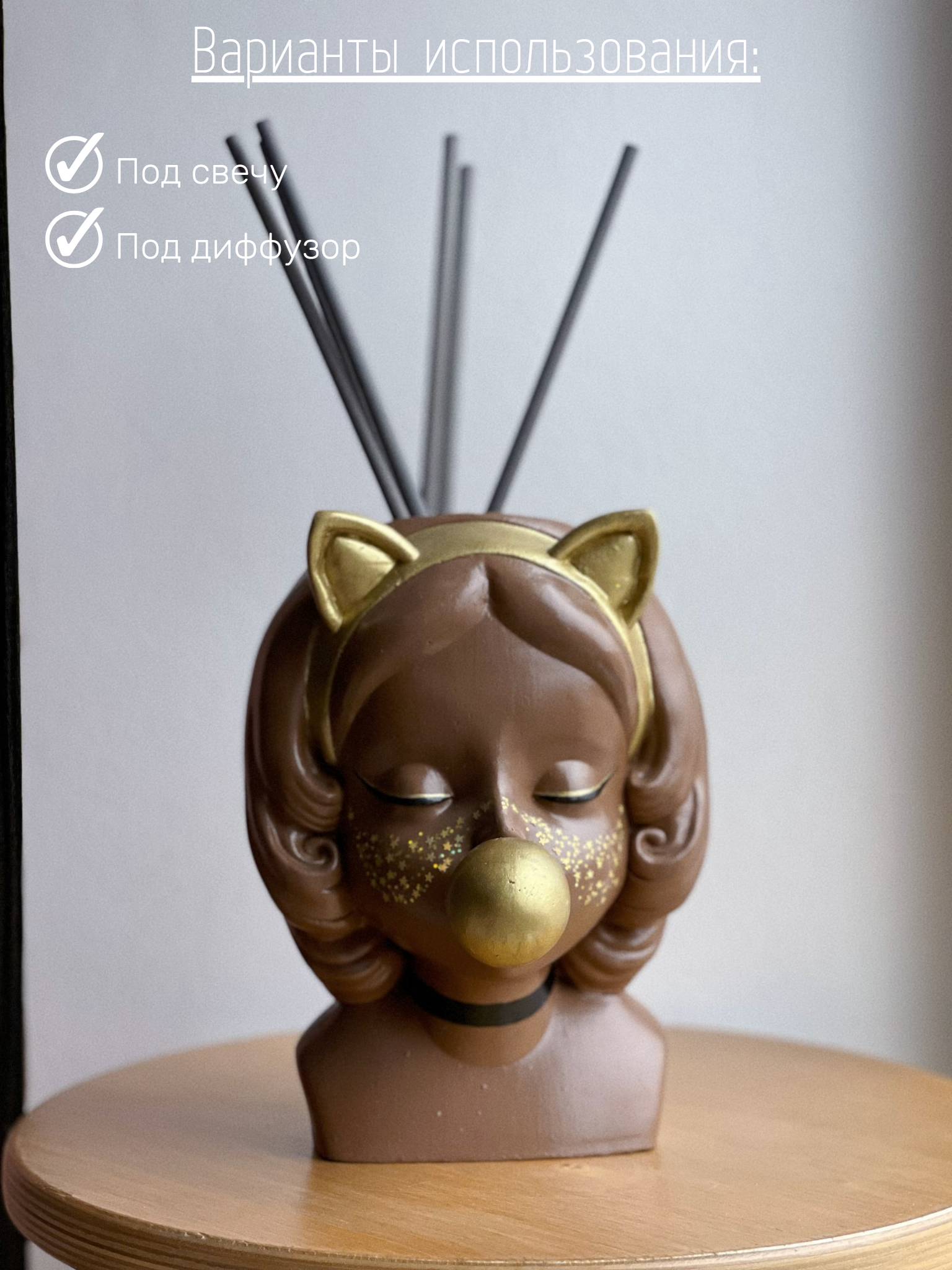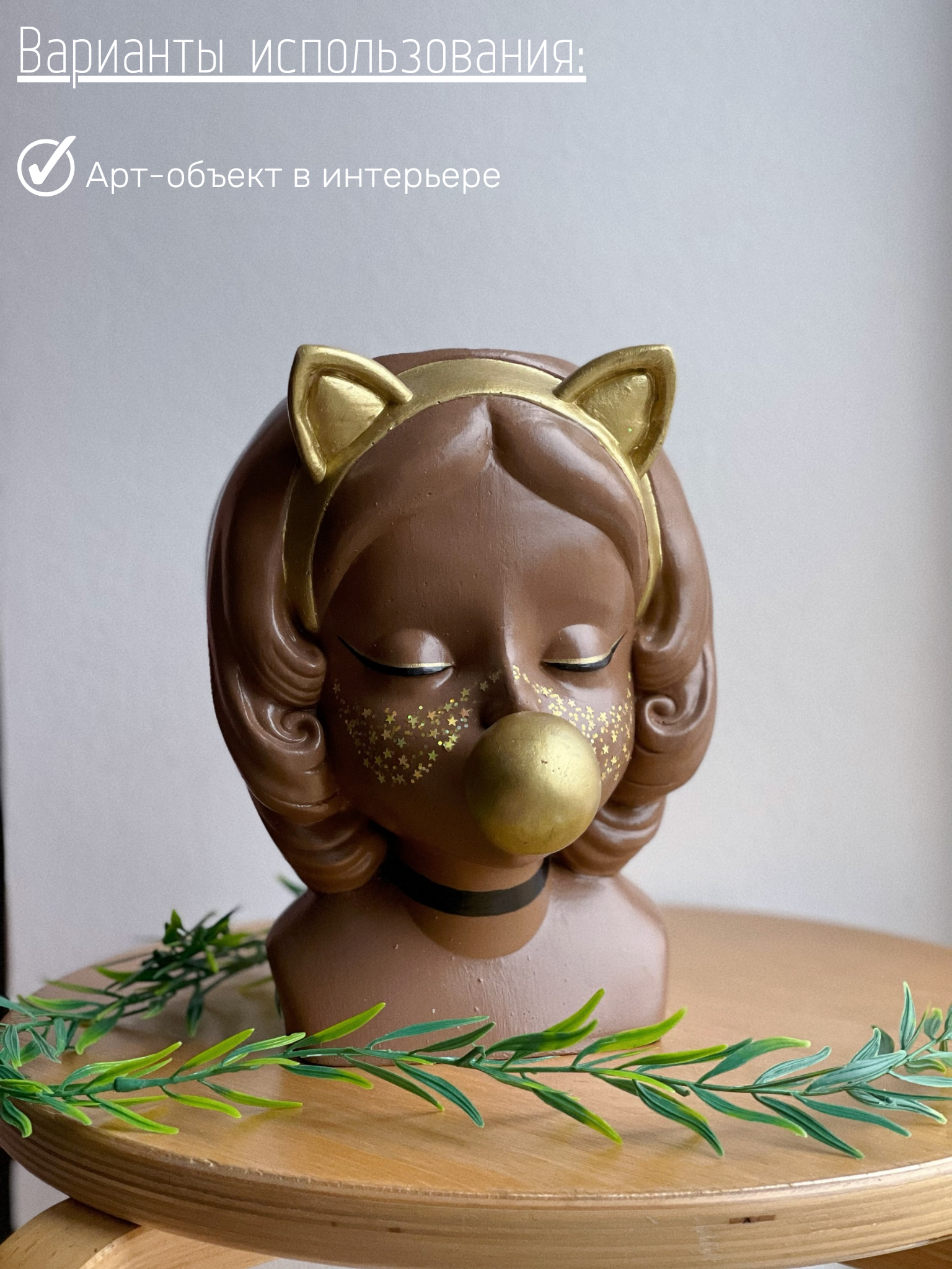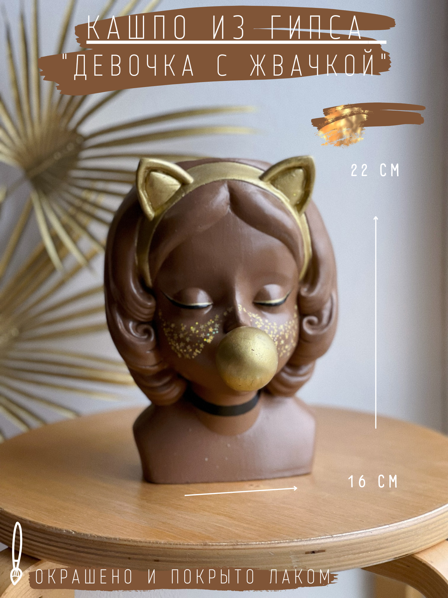 Кашпо из гипса "Девочка с жвачкой", 22 см, цвет: коричнево-золотой / статуэтка / органайзер / Девочка с пузырем интересное: