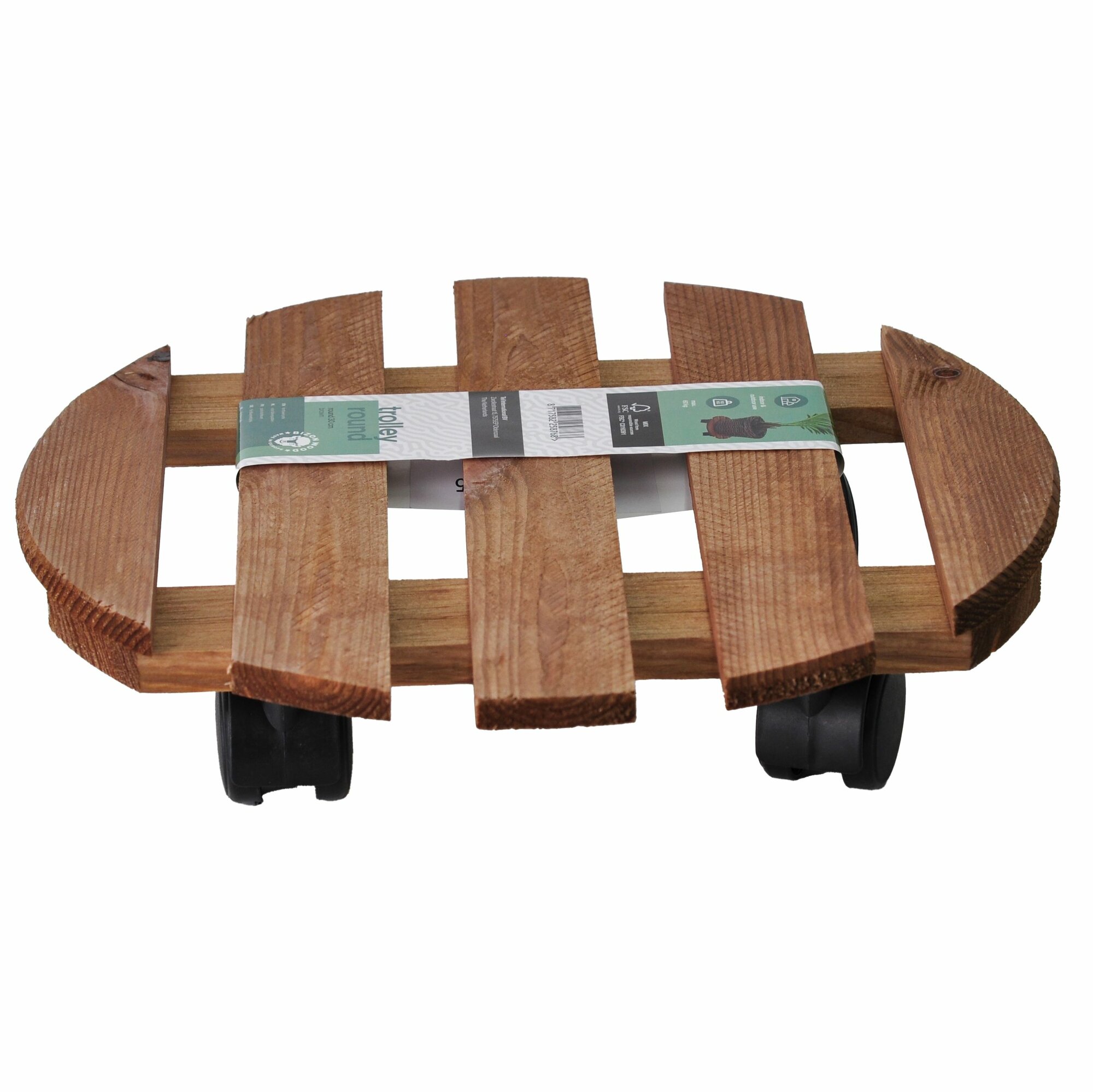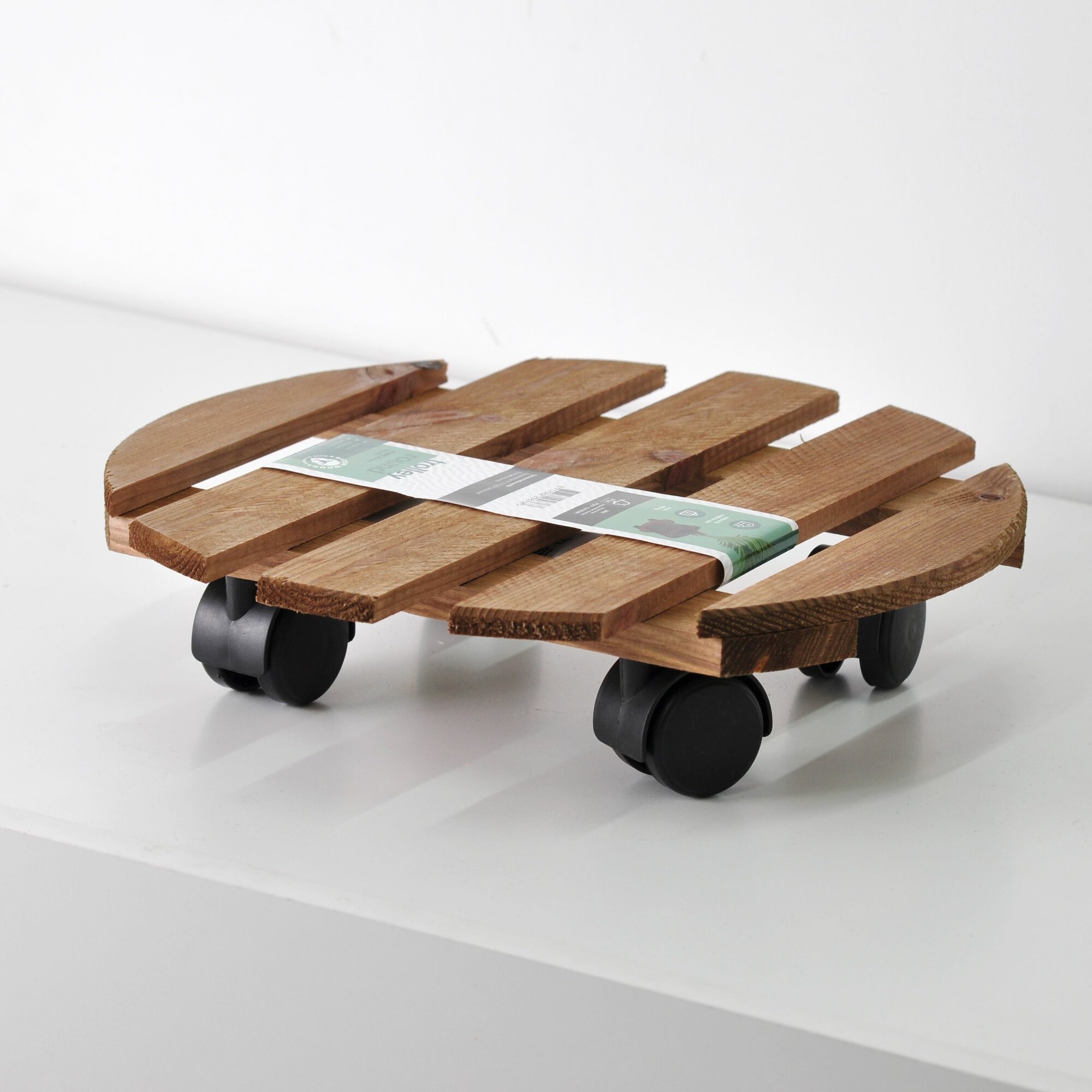 Купить Подставка для цветов Флорэль на колесиках (коричневый / сосна / бейц / коричневый / пластик / круглая)