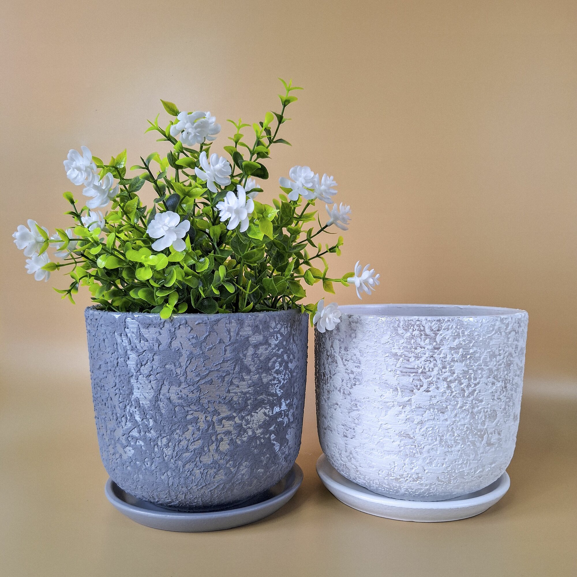 Купить Керамический горшок для цветов с поддоном и дренажным отверстием, 13см, 1.6л, серый
