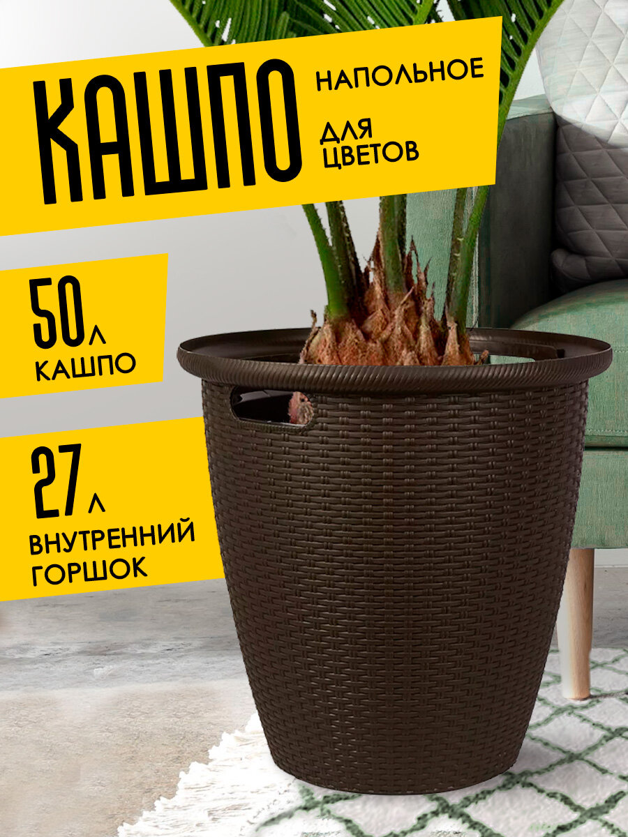 Кашпо Rattan для растений и цветов с дренажной вставкой 50 л, (горький шоколад) 6216 интересное: