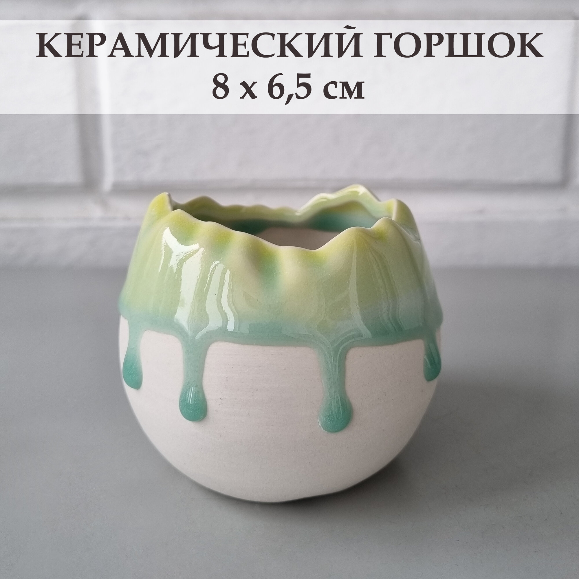 Купить Керамический горшок для суккулентов и кактусов / Керамический горшок для цветов. Белый/зеленый, 8 х 6,5 см