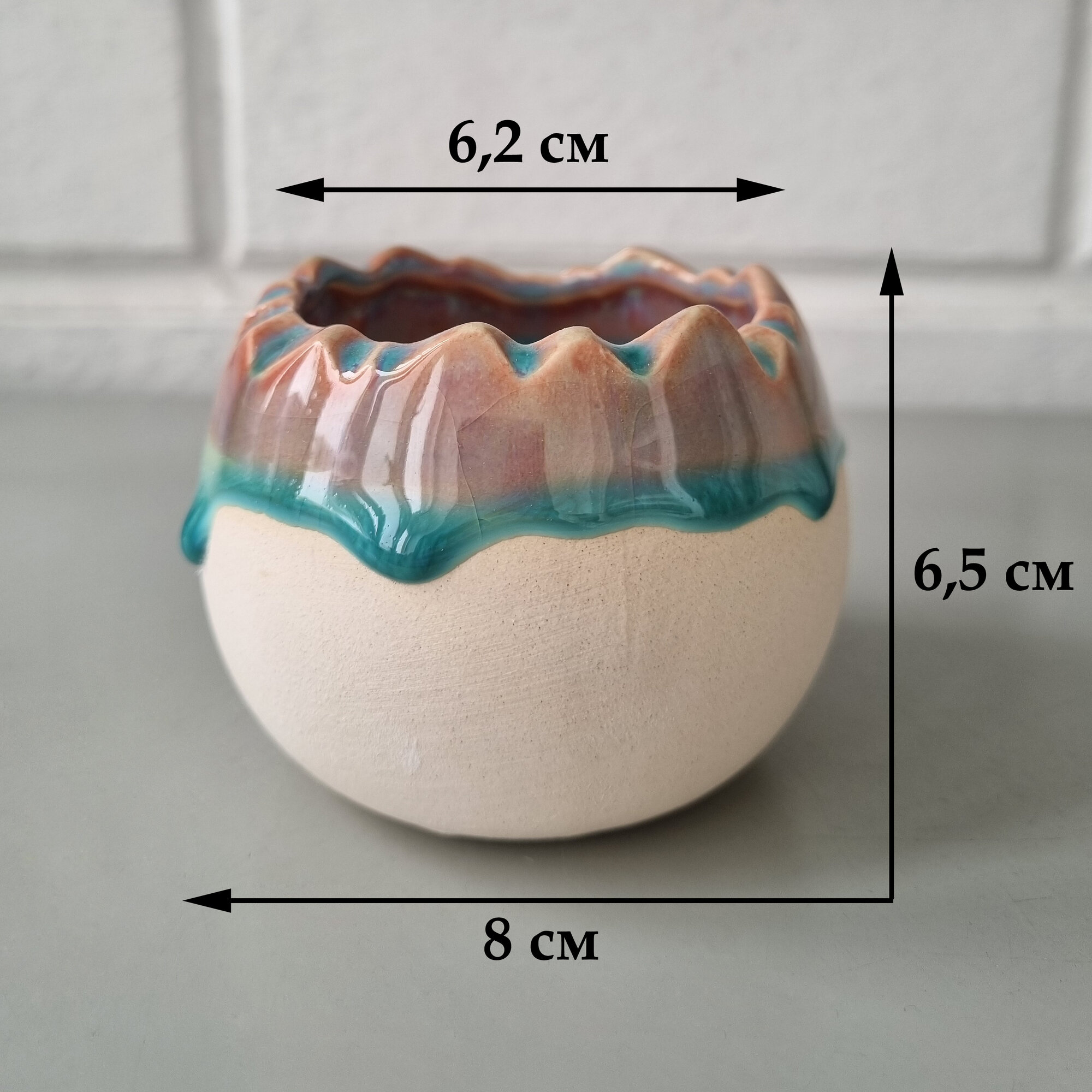 СохранитьКерамический горшок для суккулентов и кактусов / Керамический горшок для цветов. Белый/бирюзовый/красный, 8 х 6,5 см интересное: