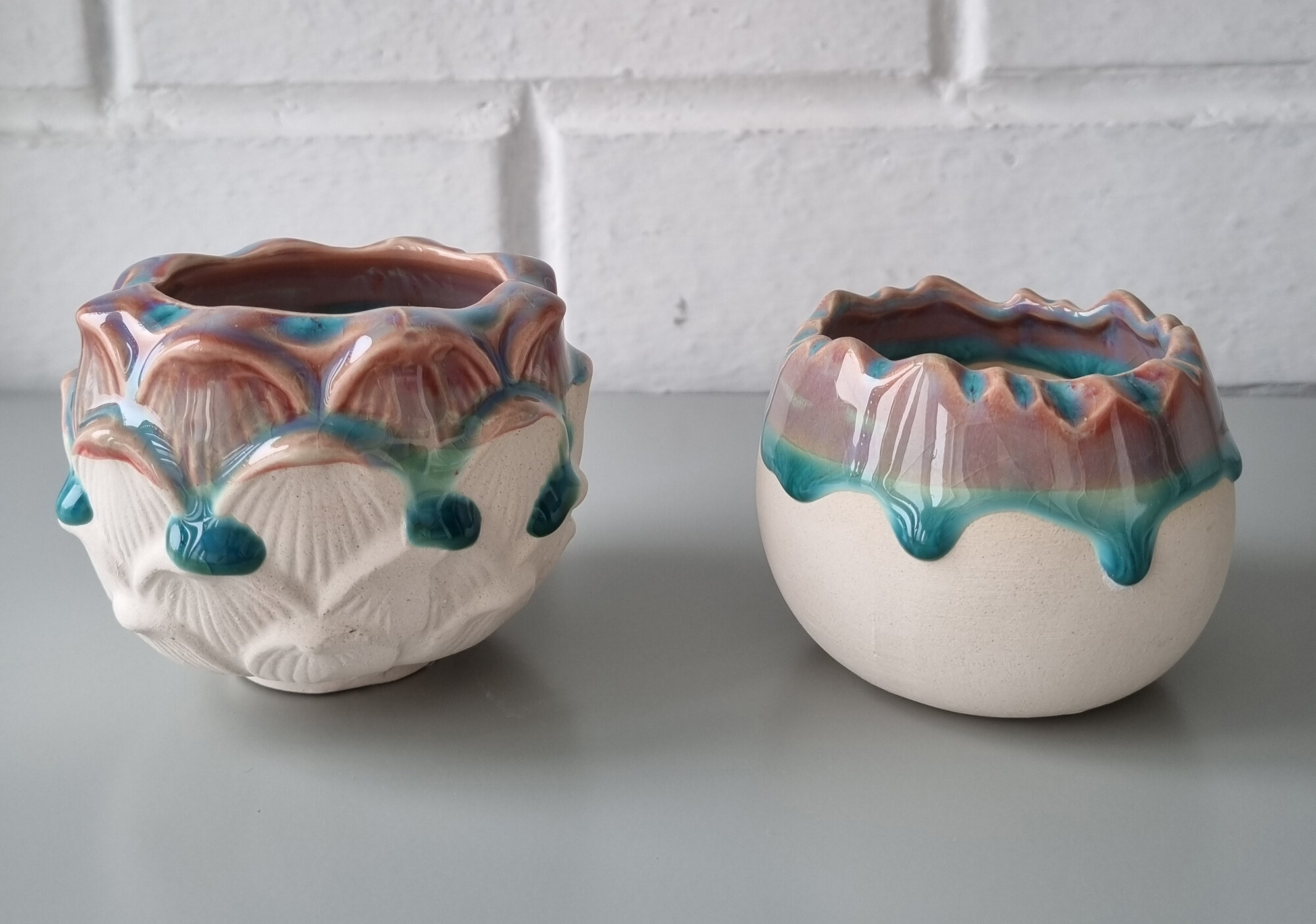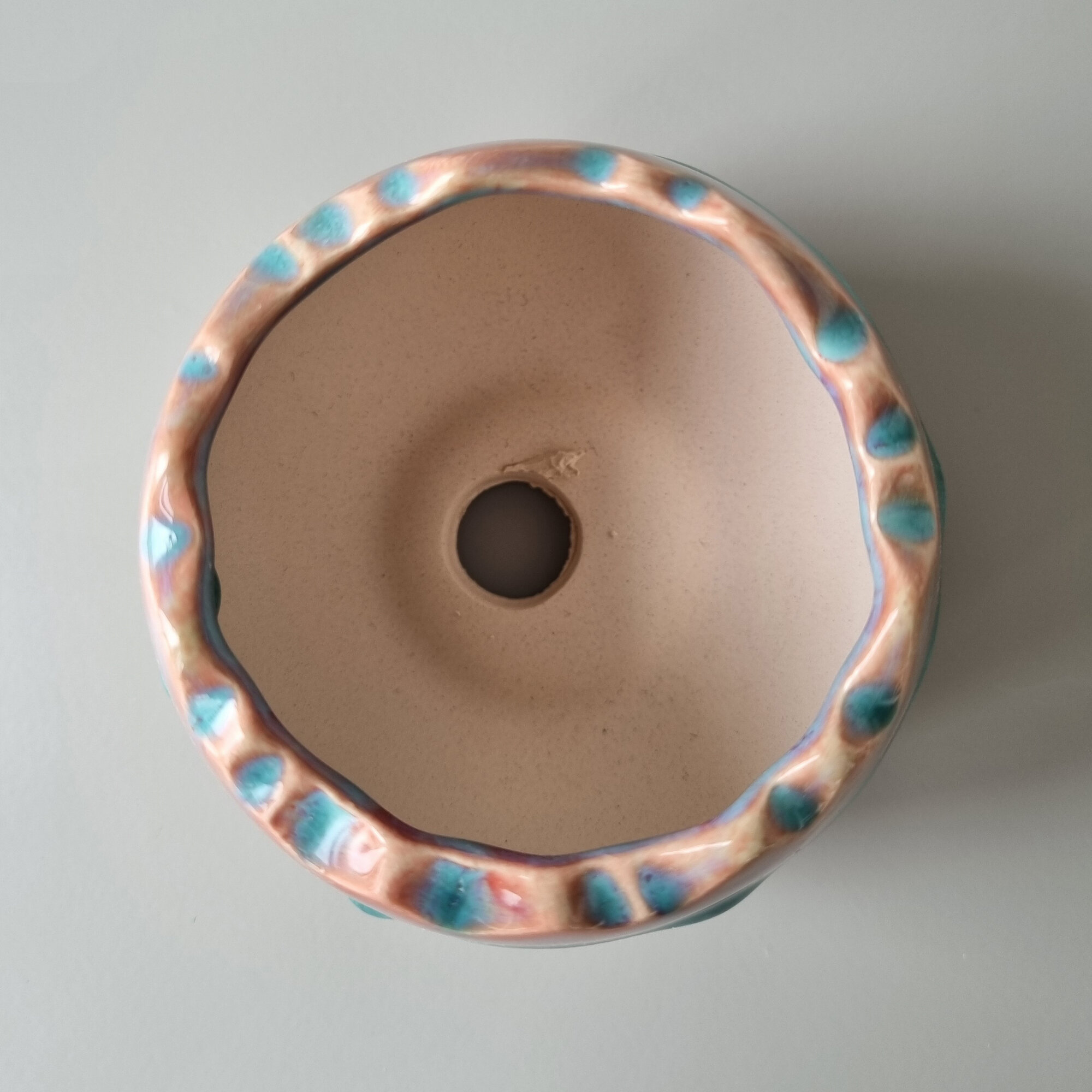 Керамический горшок для суккулентов и кактусов / Керамический горшок для цветов. Белый с голубым