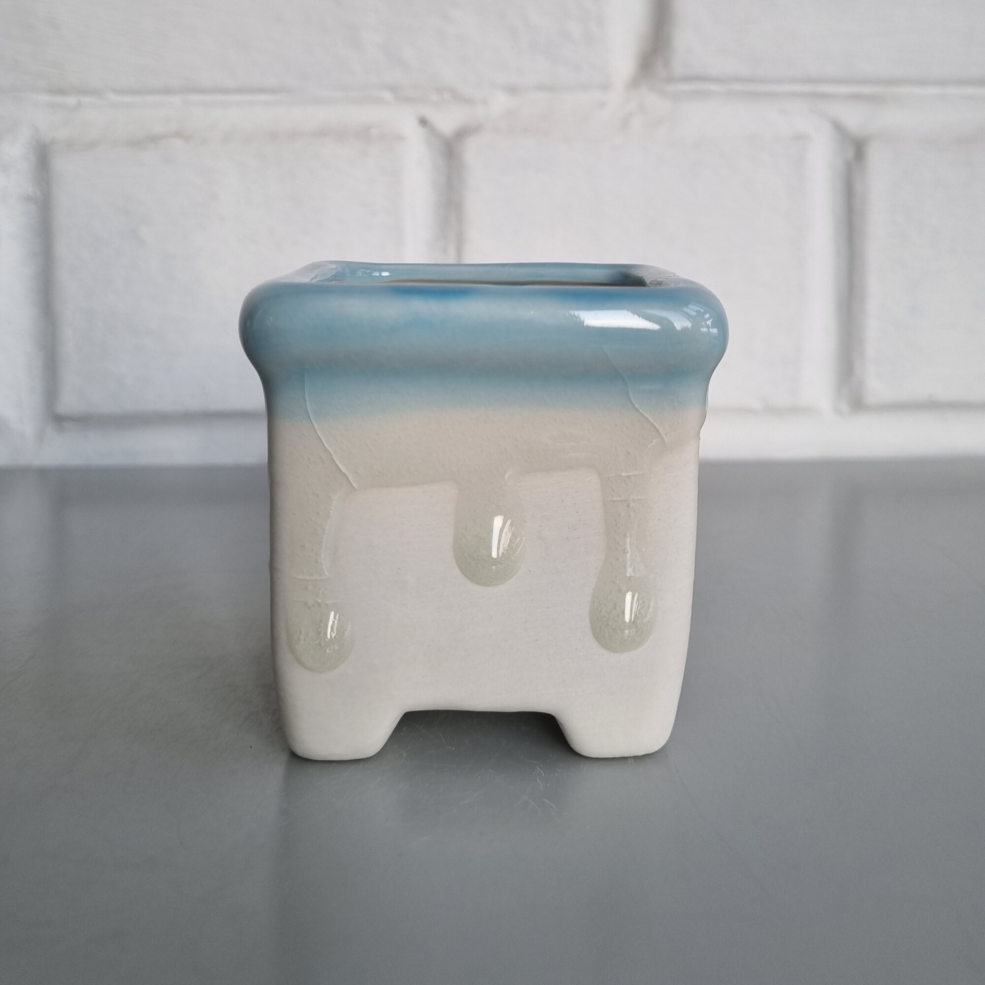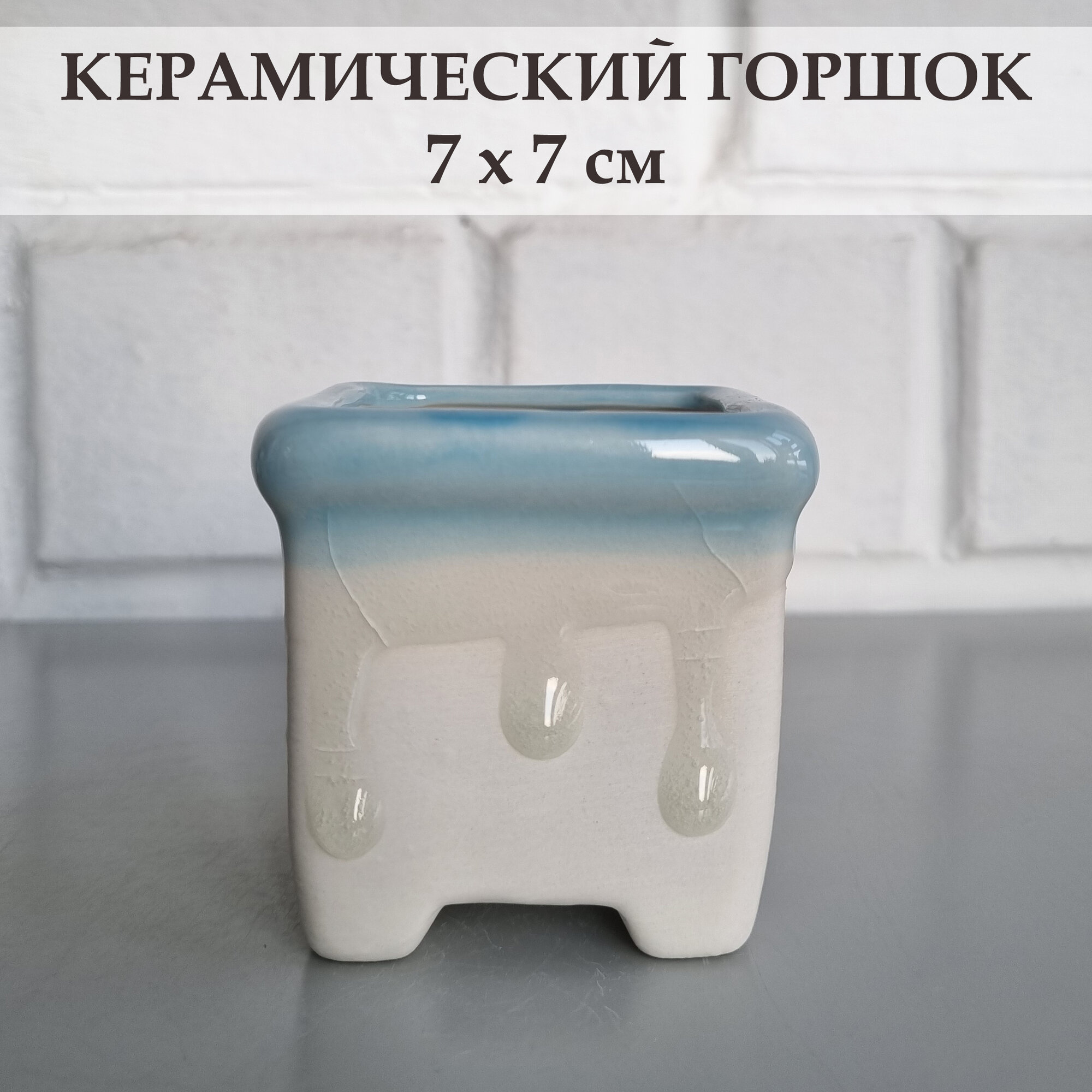Купить Керамический горшок для суккулентов и кактусов / Керамический горшок для цветов. Белый/голубой, 7х7 см