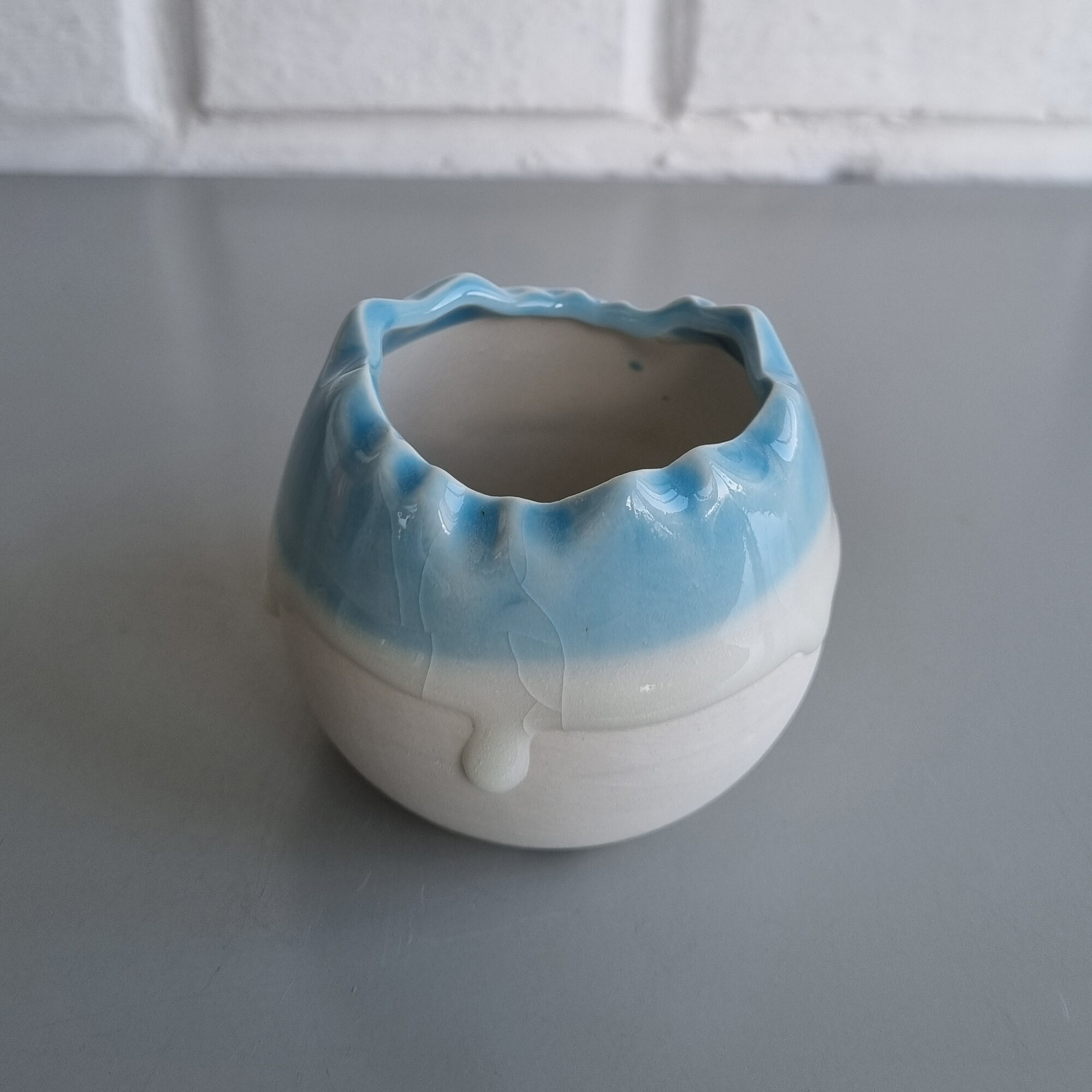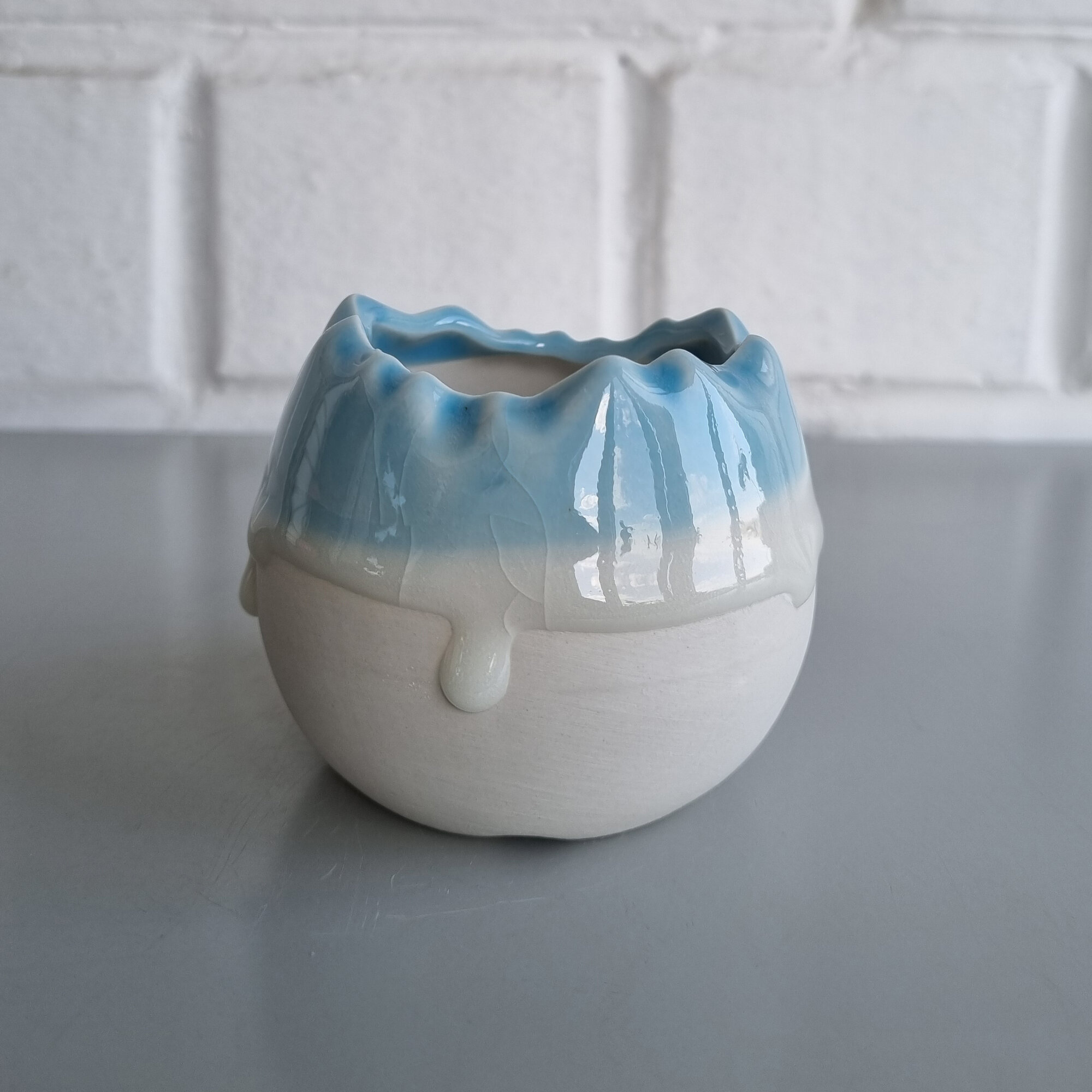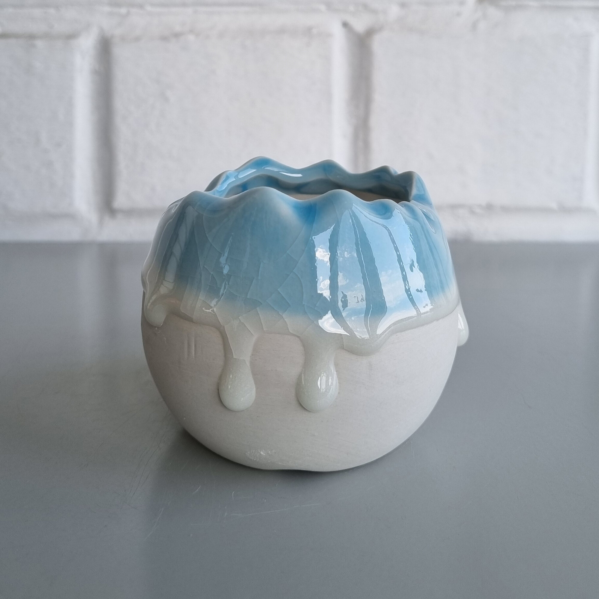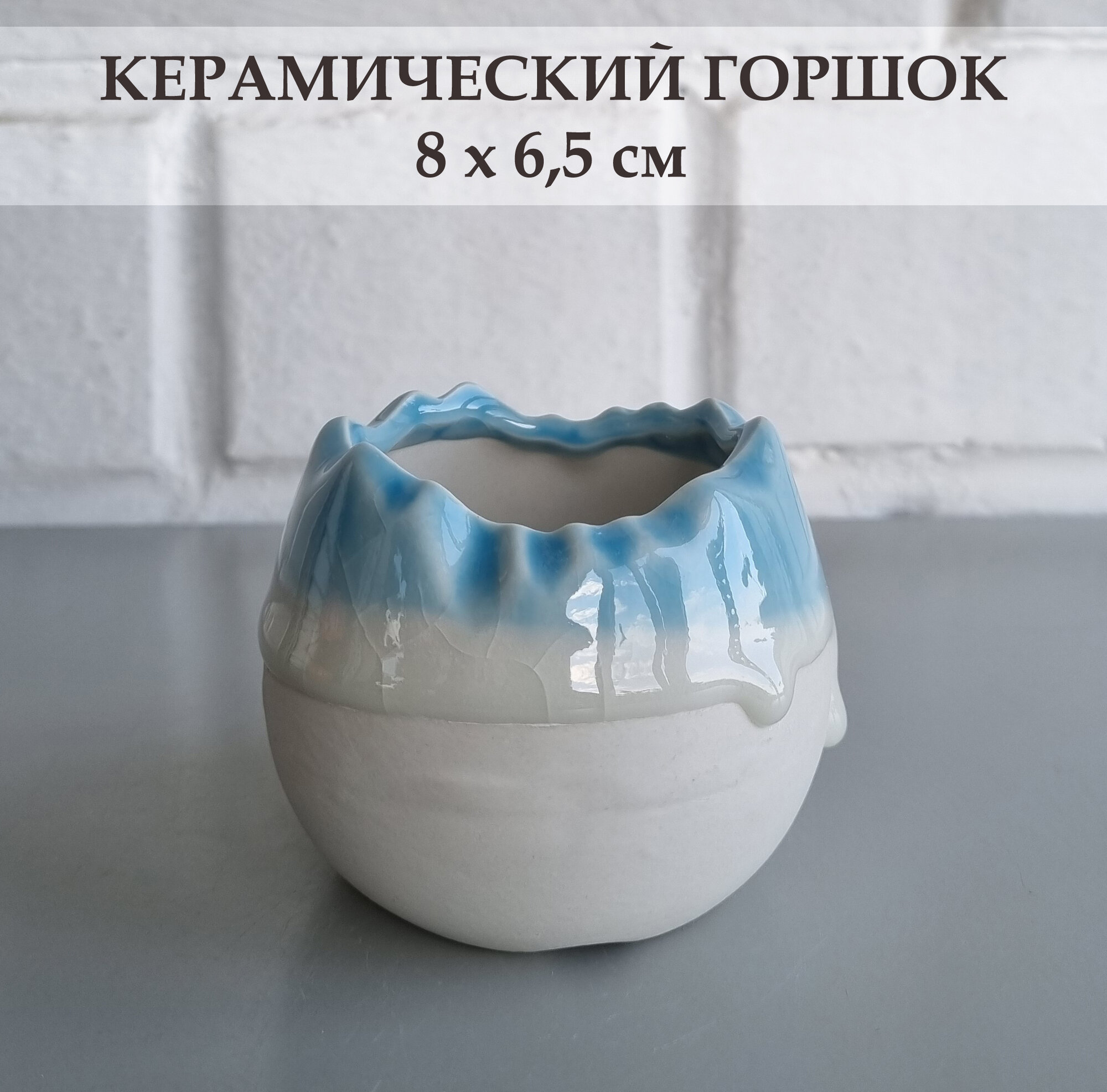 Купить Керамический горшок для суккулентов и кактусов / Керамический горшок для цветов. Белый с голубым