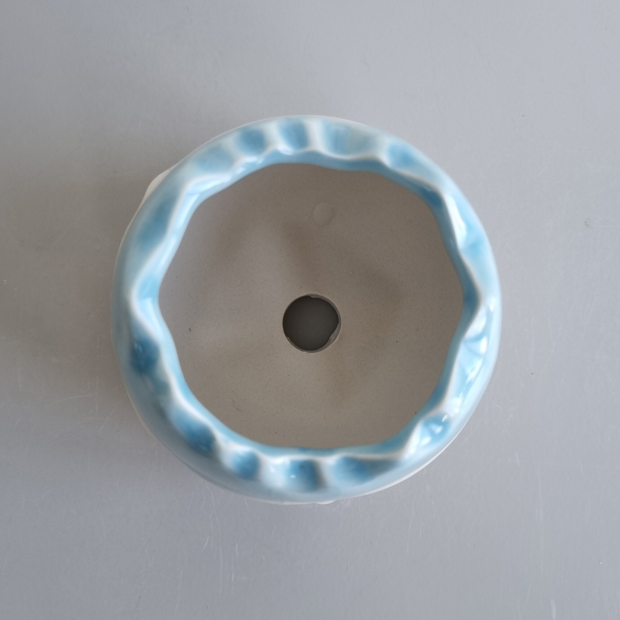 Керамический горшок для суккулентов и кактусов / Керамический горшок для цветов. Белый/голубой, 8,2х6,5 см
