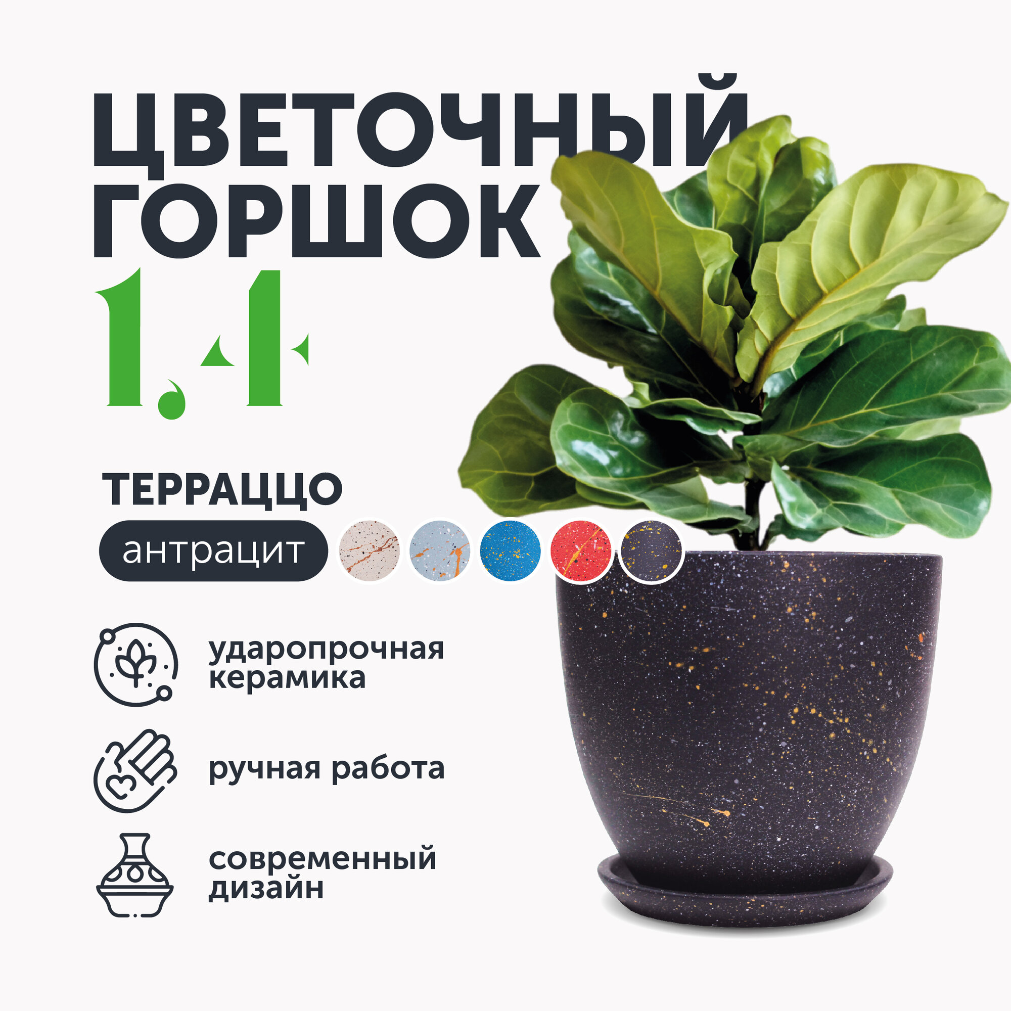 СохранитьГоршок для цветов керамический с поддоном, 15х13 см 1,4 л ТЕРРАЦЦО антрацит интересное: