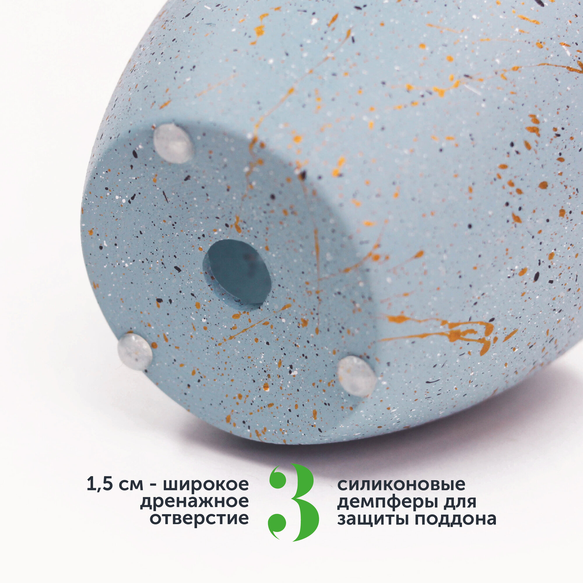 Горшок для цветов керамический с поддоном, 15х13 см 1,4 л ТЕРРАЦЦО бледно-синий