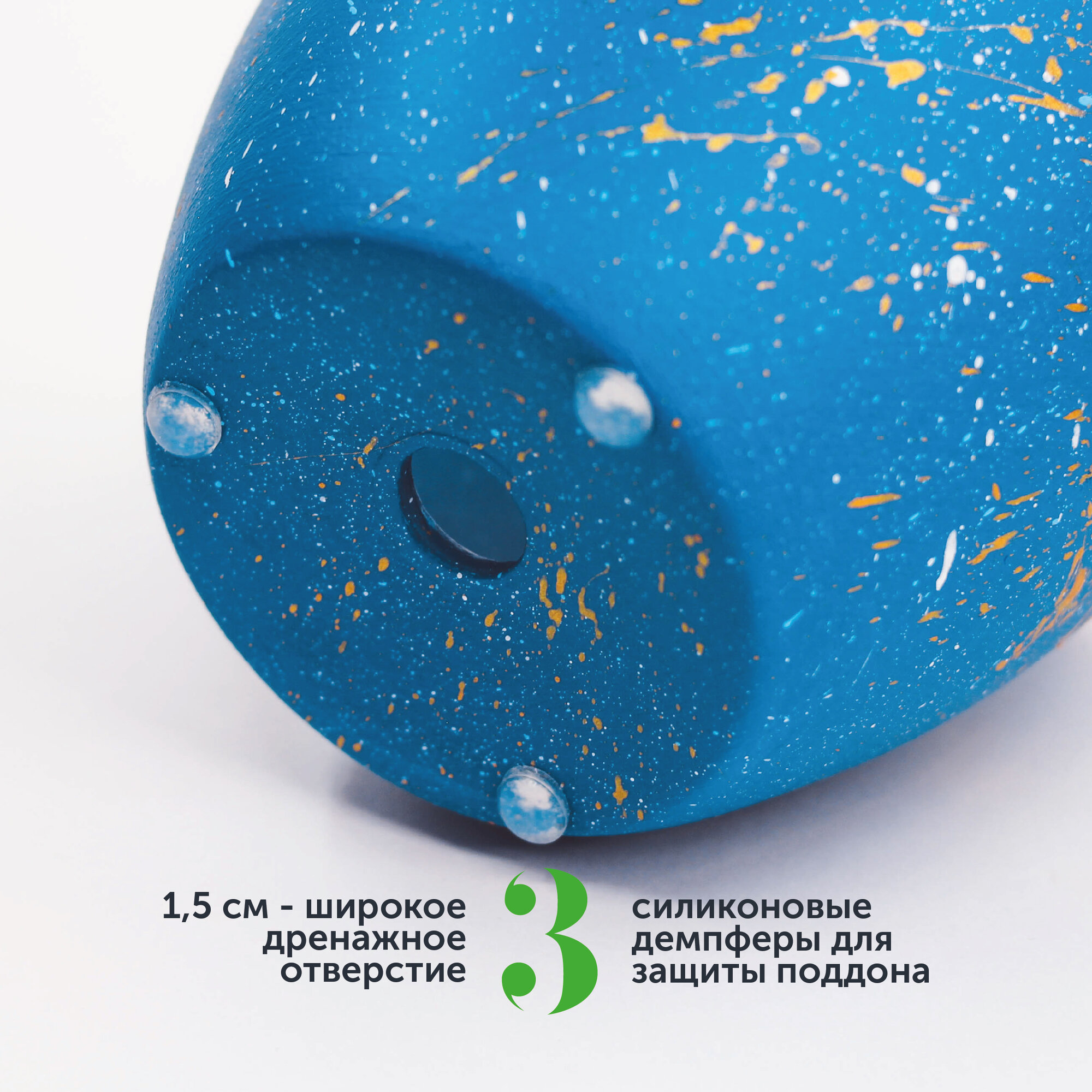 Горшок для цветов керамический с поддоном, 15х13 см 1,4 л ТЕРРАЦЦО лазурный