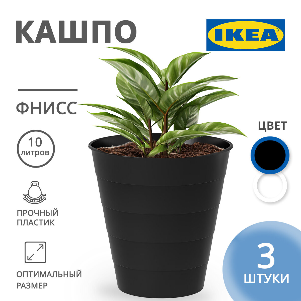 Ниже Вы можете прочитать отзывы на Кашпо IKEA "фнисс", черный, пластик, набор 3 шт, для балкона/дома/улицы, 28x28х28 см, ознакомится с подробными характеристиками, посмотреть интересные обзоры и фотографии на Кашпо IKEA "фнисс", черный, пластик, набор 3 шт, для балкона/дома/улицы, 28x28х28 см.
