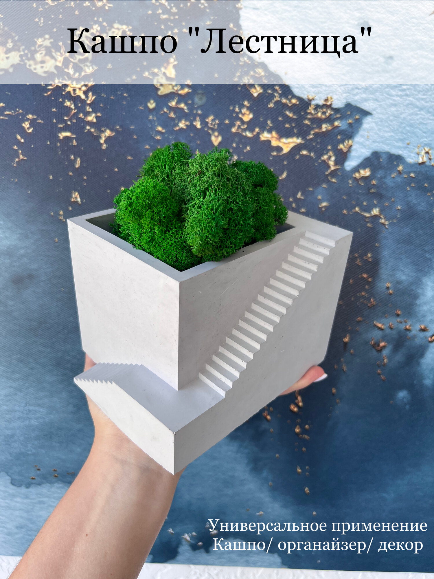 Кашпо из гипса «Лестница», дом, квадратное кашпо, органайзер для мелочей, для суккулентов и кактуса, идеальный подарок интересное:
