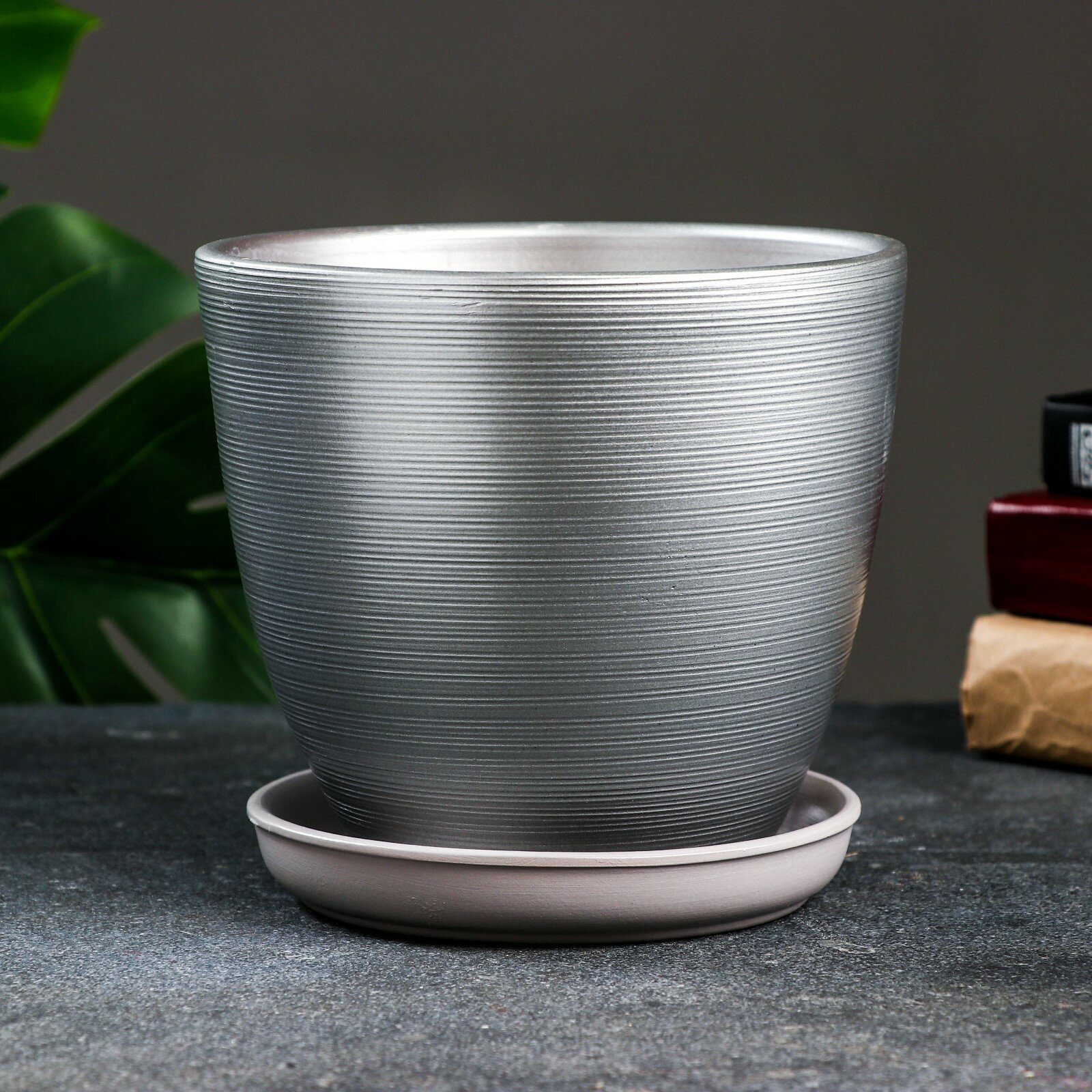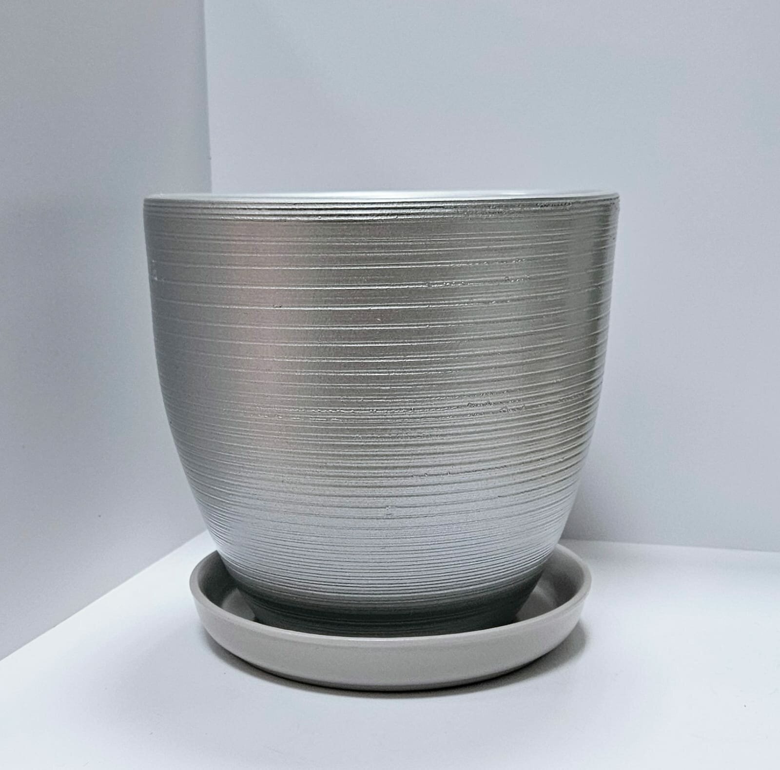 Горшок цветочный "Амелия", керамика, 2.4 л, с поддоном, серый интересное: