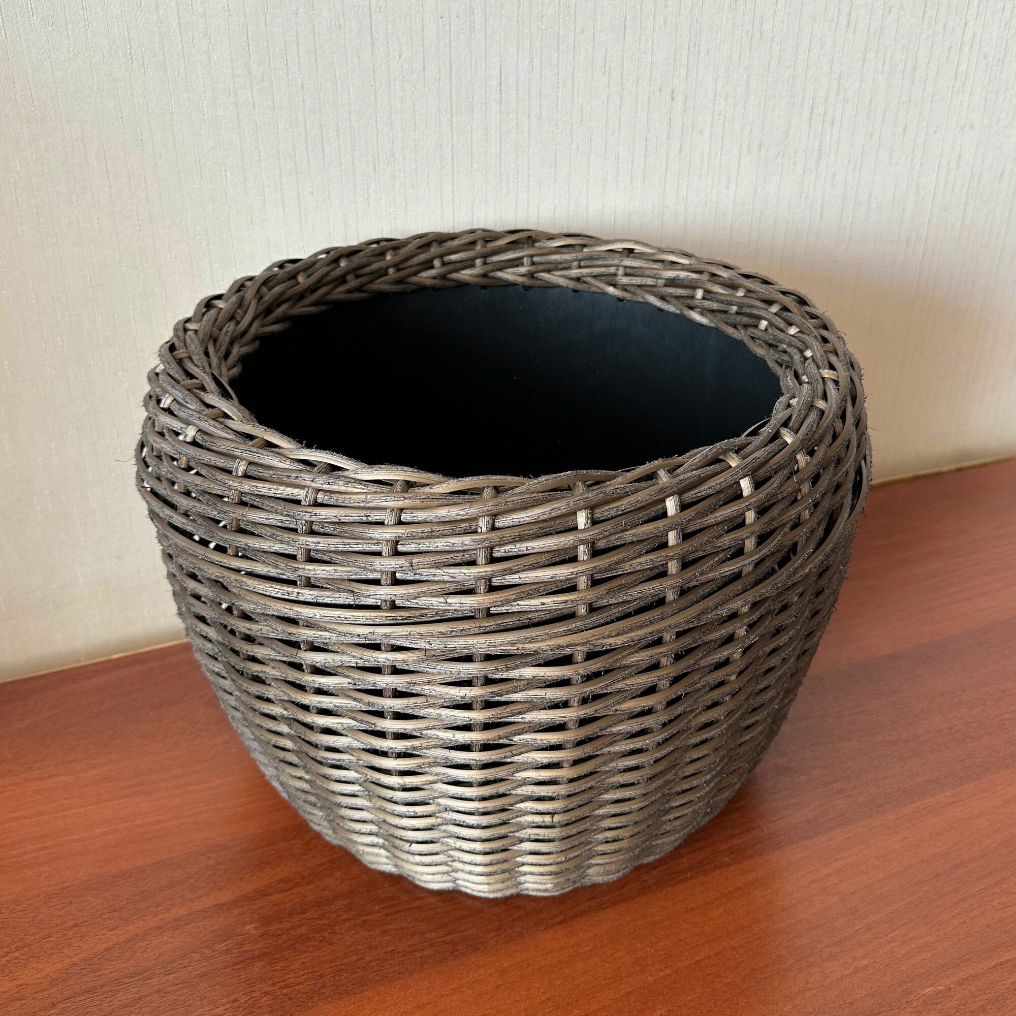 Кашпо "Viola Craft", ротанг, графит, 12л, 24x36 см, ручная авторская работа