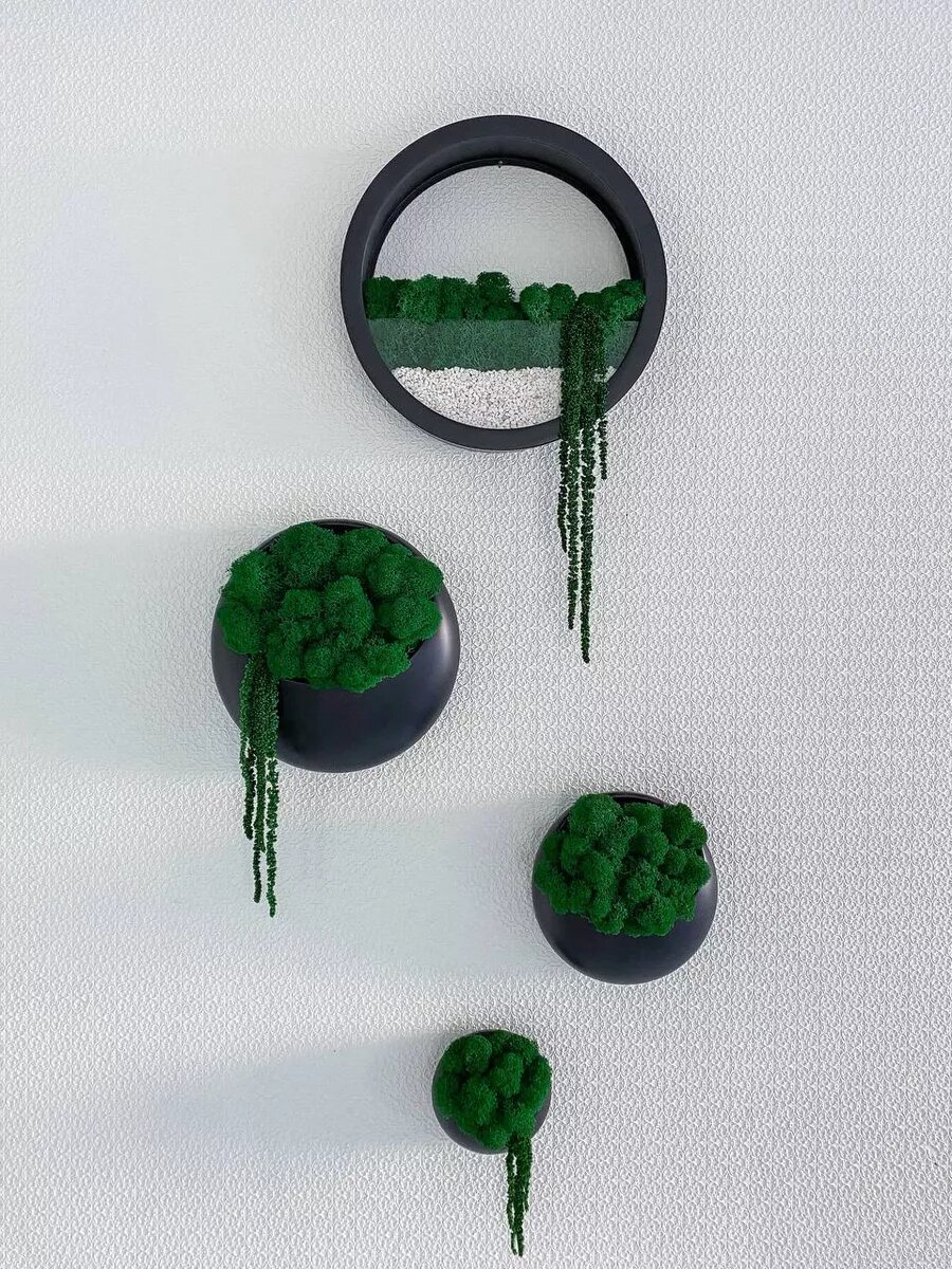 Набор настенных кашпо со мхом и амарантом интересное: