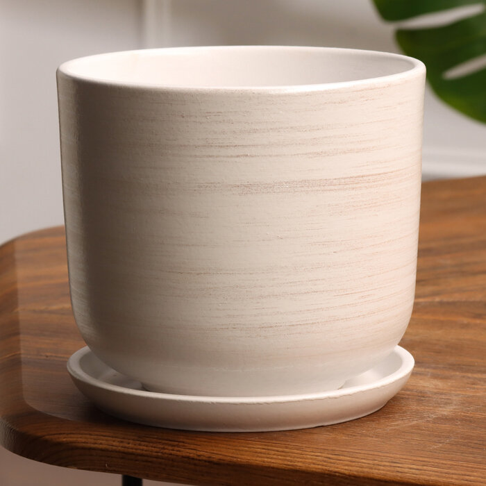 Горшок для цветов керамический "Галактика-3" 1,6л, д15см, h13см, форма "Цилиндр", с поддоном, белый интересное: