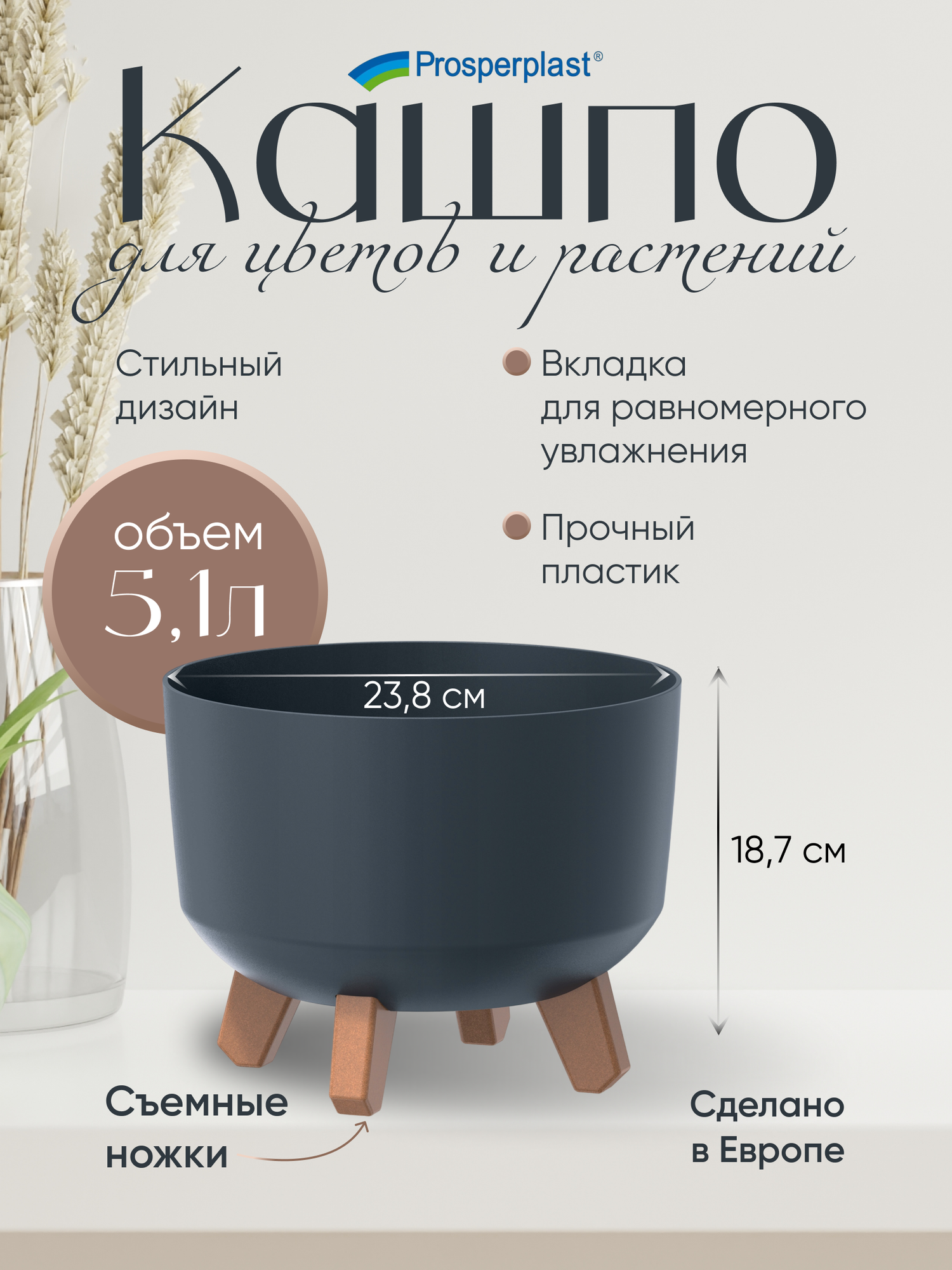 Кашпо для цветов Prosperplast GRACIA LOW на ножках, диаметр 23,5 см, высота 15,5 см. 3,8 л