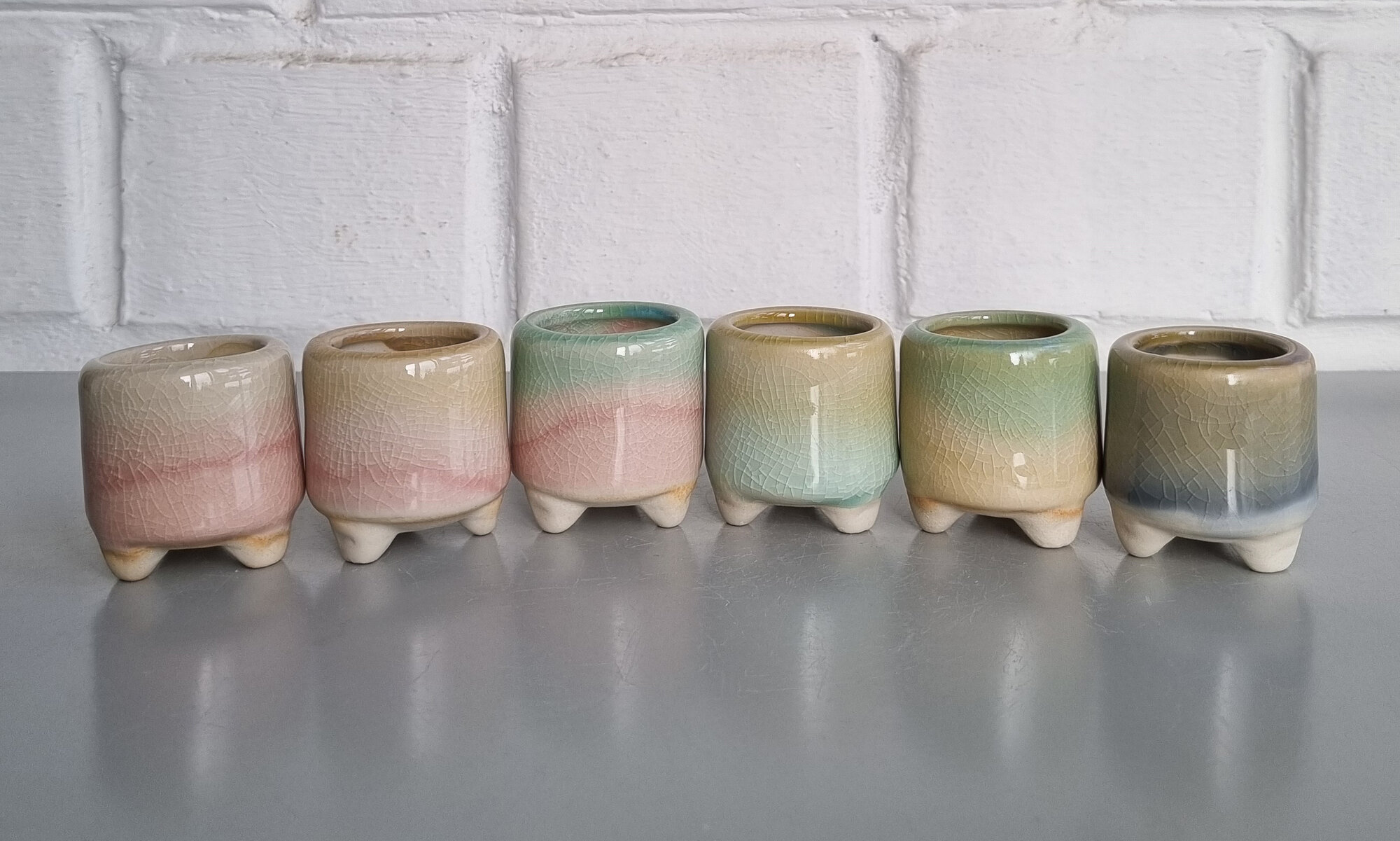 Купить Керамический горшок для суккулентов и кактусов / Керамический горшок для цветов. Зеленый/розовый