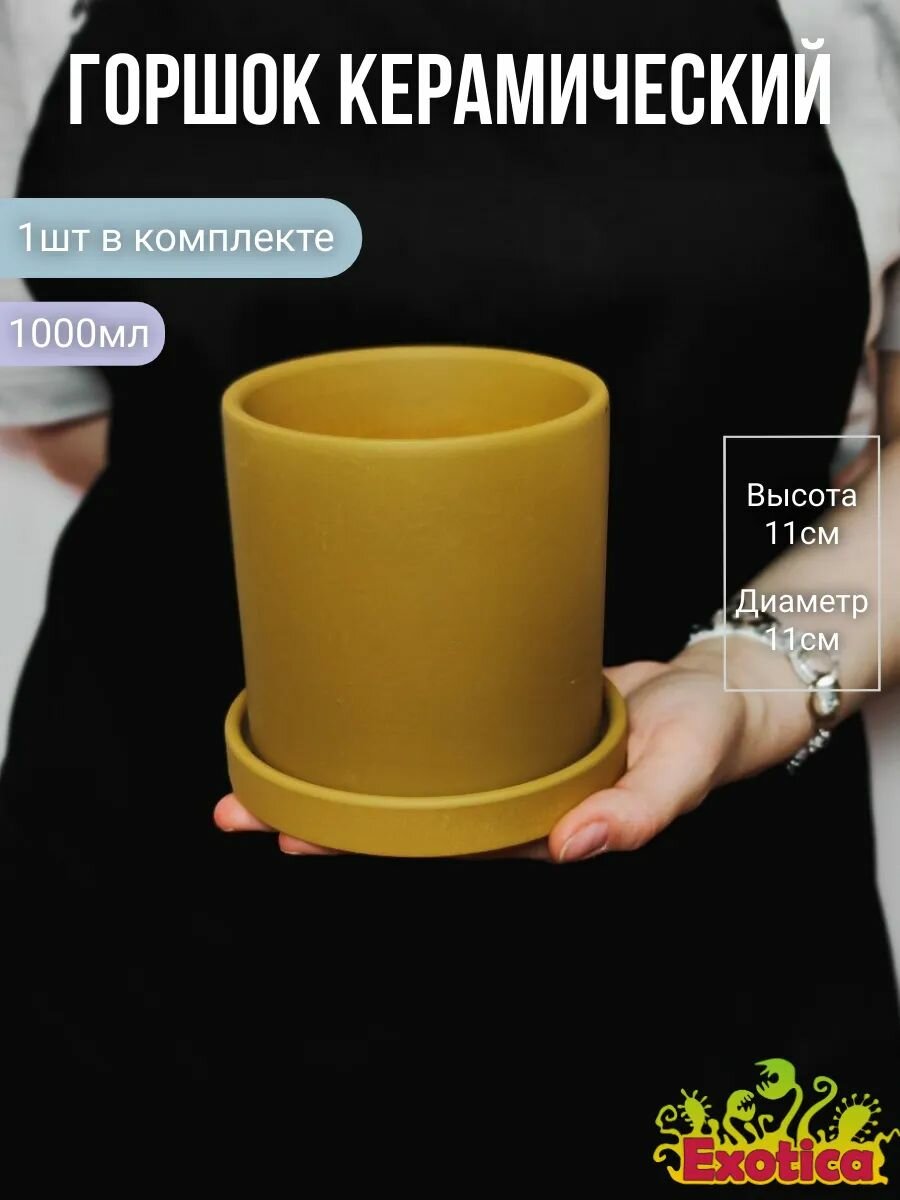 Купить Горшок керамический золотой D11, V1л (с поддоном)
