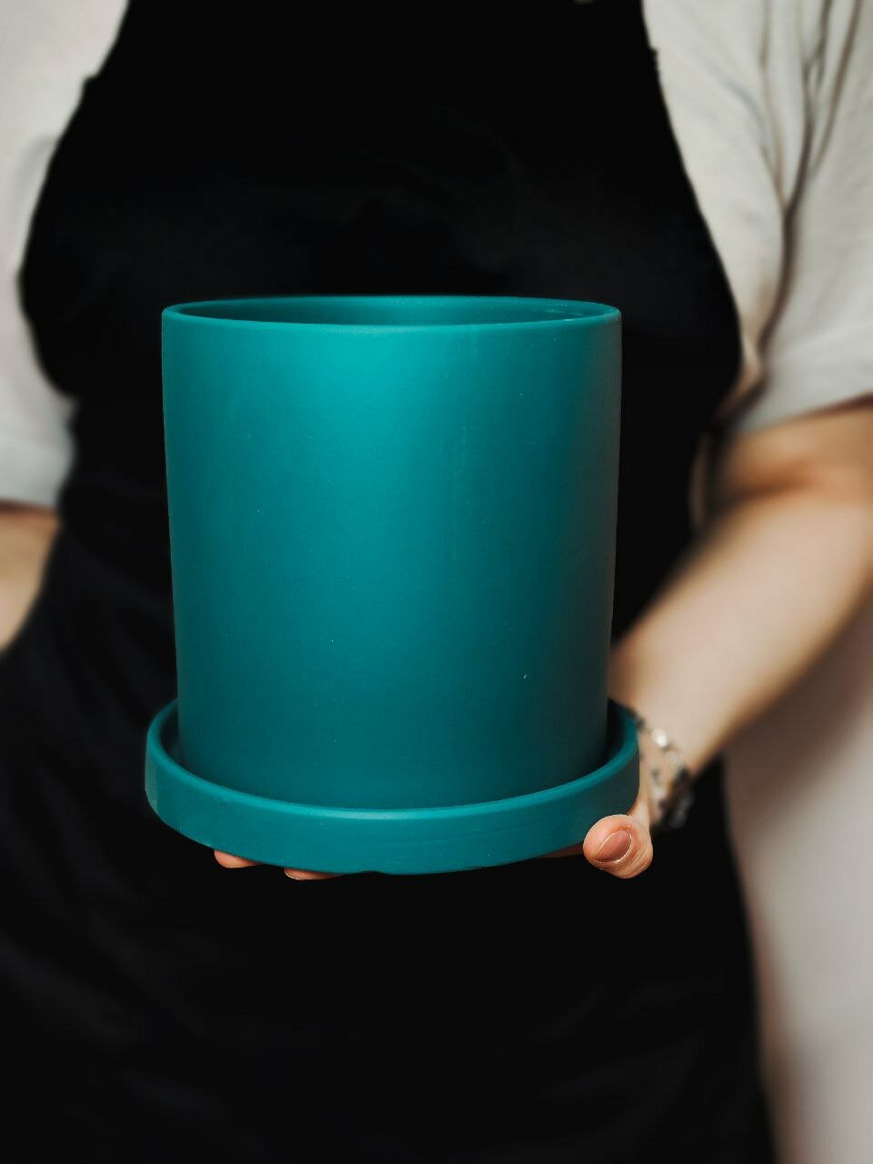 Горшок керамический темно - бирюзовый D14,5, V2л (с поддоном)