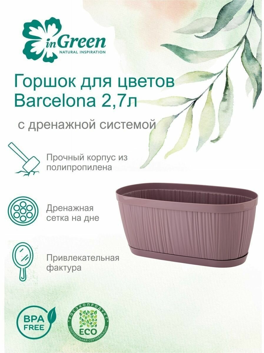 Горшок для цветов InGreen BARCELONA 2,7л, 275х145мм овальный Морозная слива интересное: