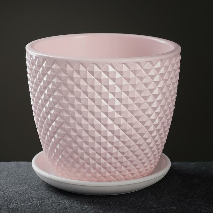 Горшок керамический с поддоном букле серый крокус 2,3 л