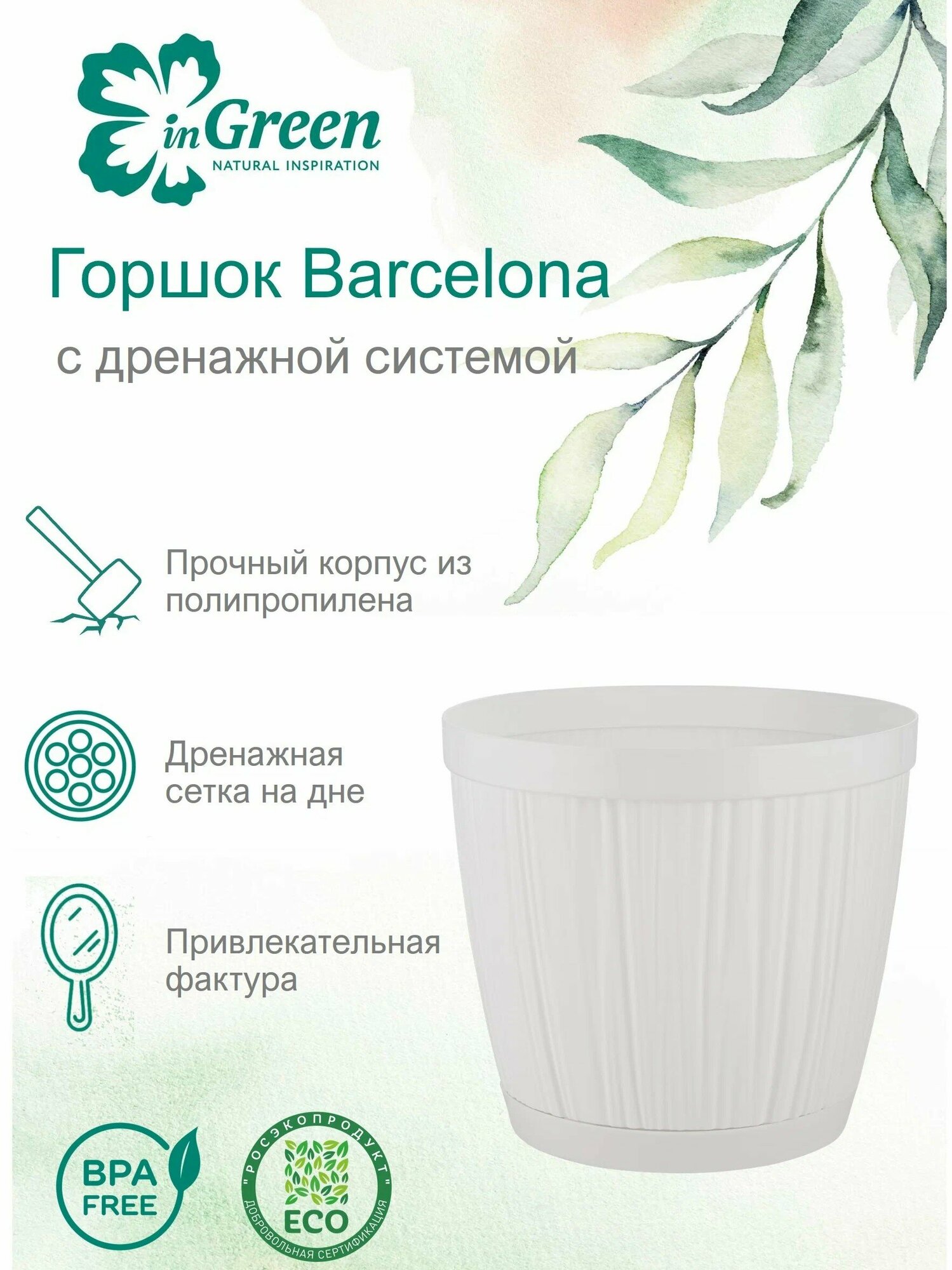 Горшок для цветов InGreen BARCELONA 1,8л, D155мм белый