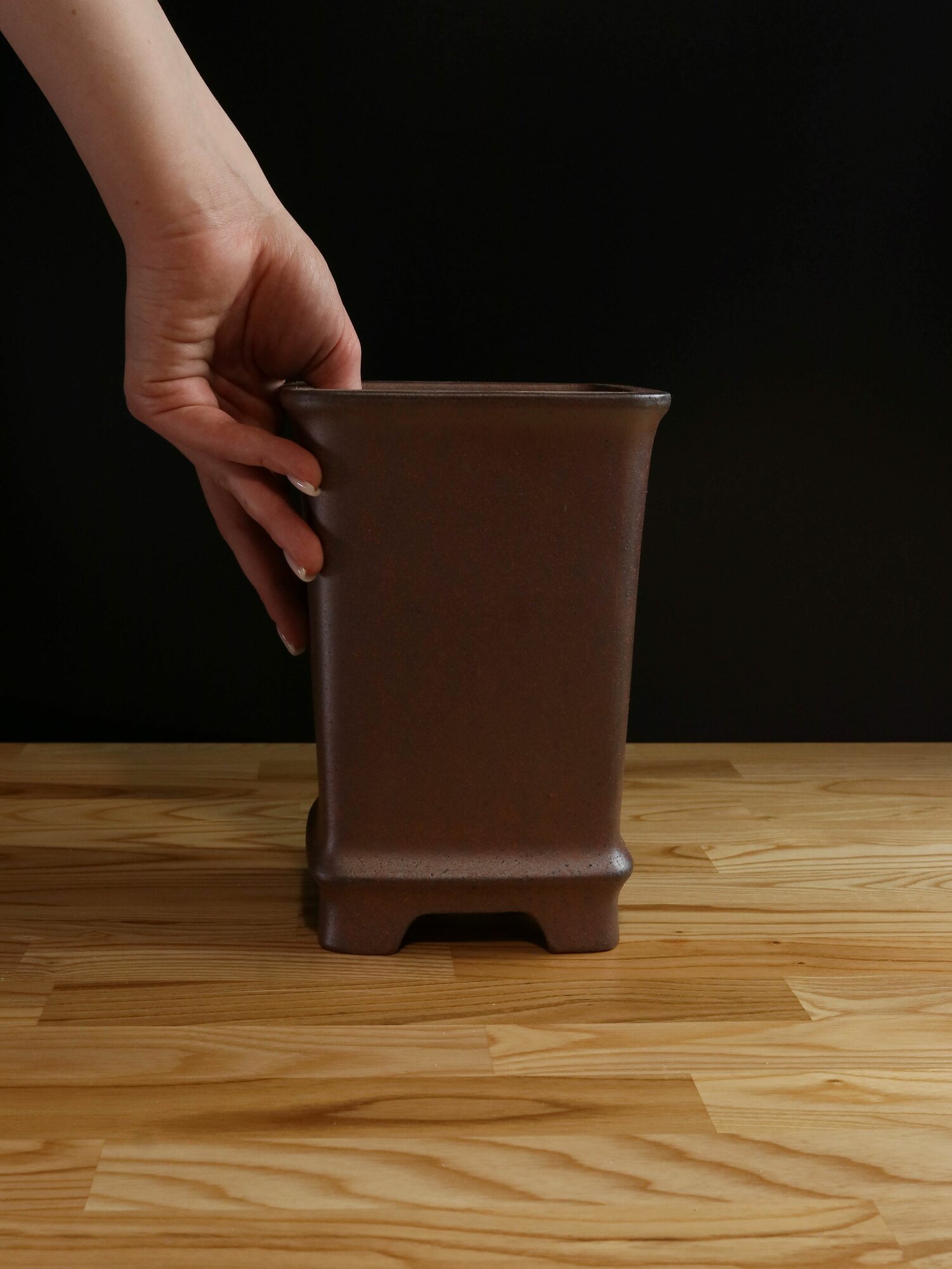 Неглазурованный керамический горшок для бонсай и цветов, бонсайница 11,2х11,2х17,3 см из исинской глины в антикварном стиле.