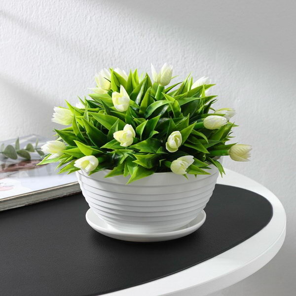 Горшок для цветов с подставкой "Алиса", 1.5 л, d=20 см, h=10 см, пластиковый, белый