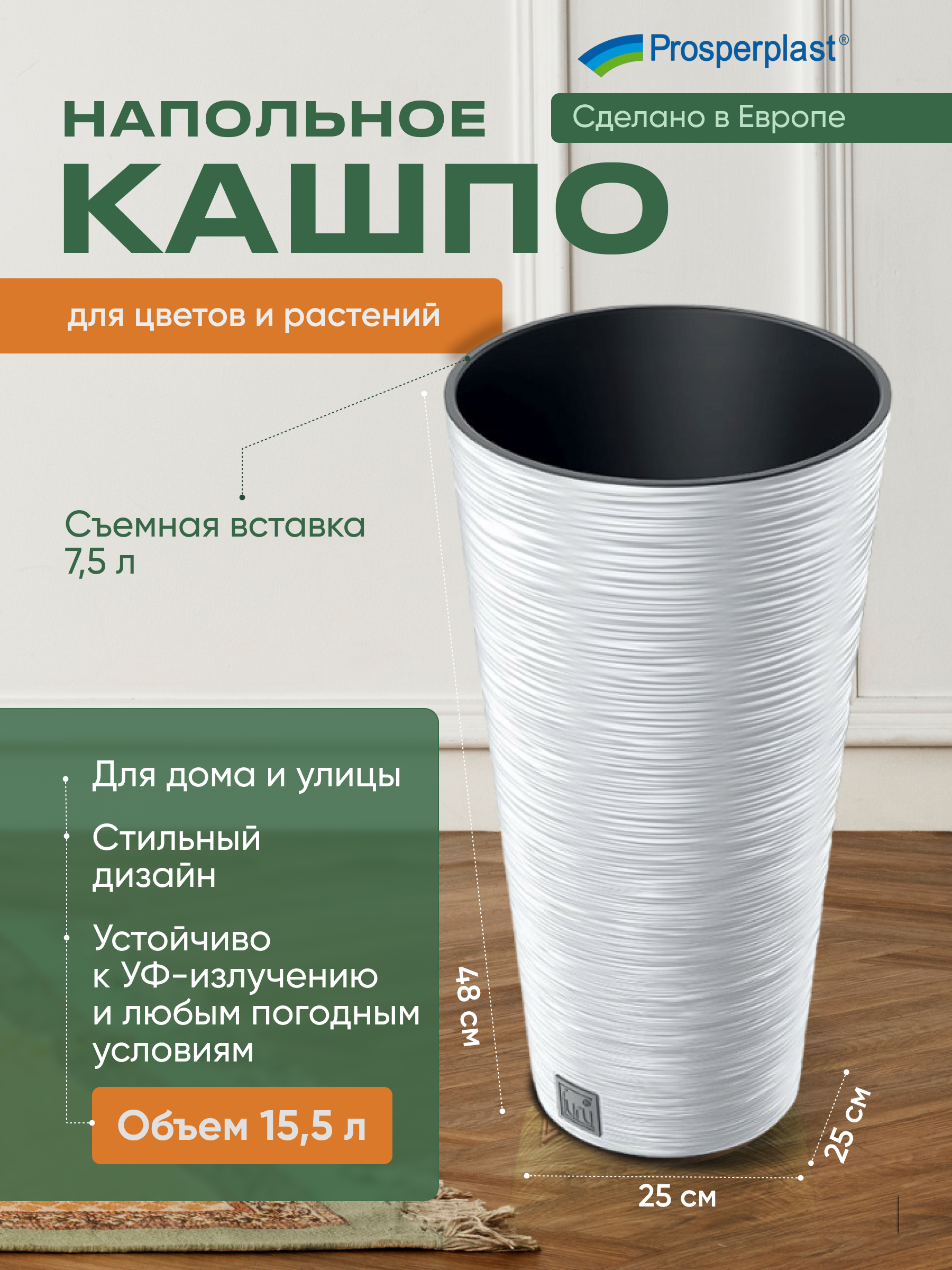 Кашпо Prosperplast "FURU SLIM", пластик, белое, для улицы, 27 л.