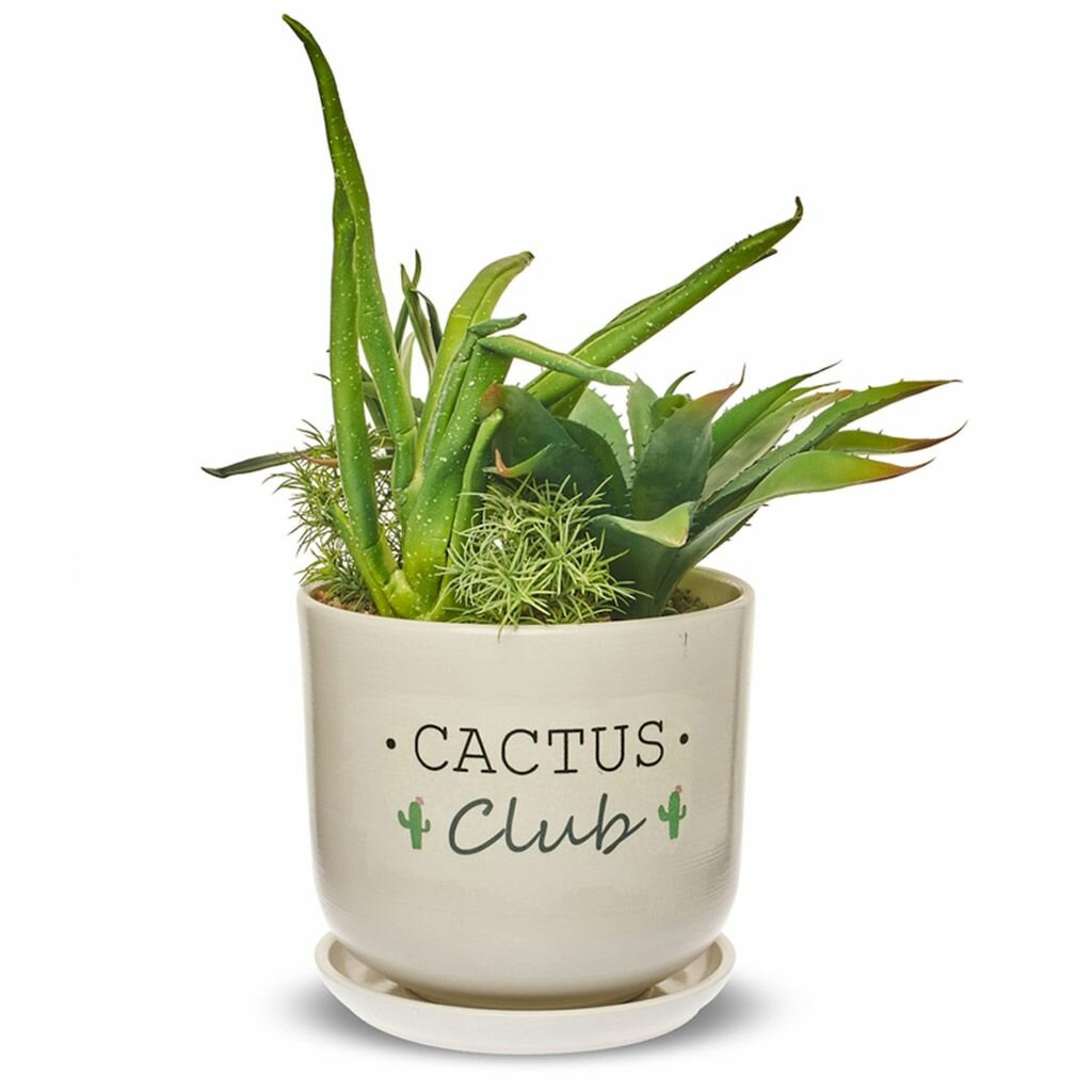 Купить Горшок для цветов керамический "Кактус клуб-2" 0,8л, д12см, h10,5см, форма "Цилиндр", с поддоном