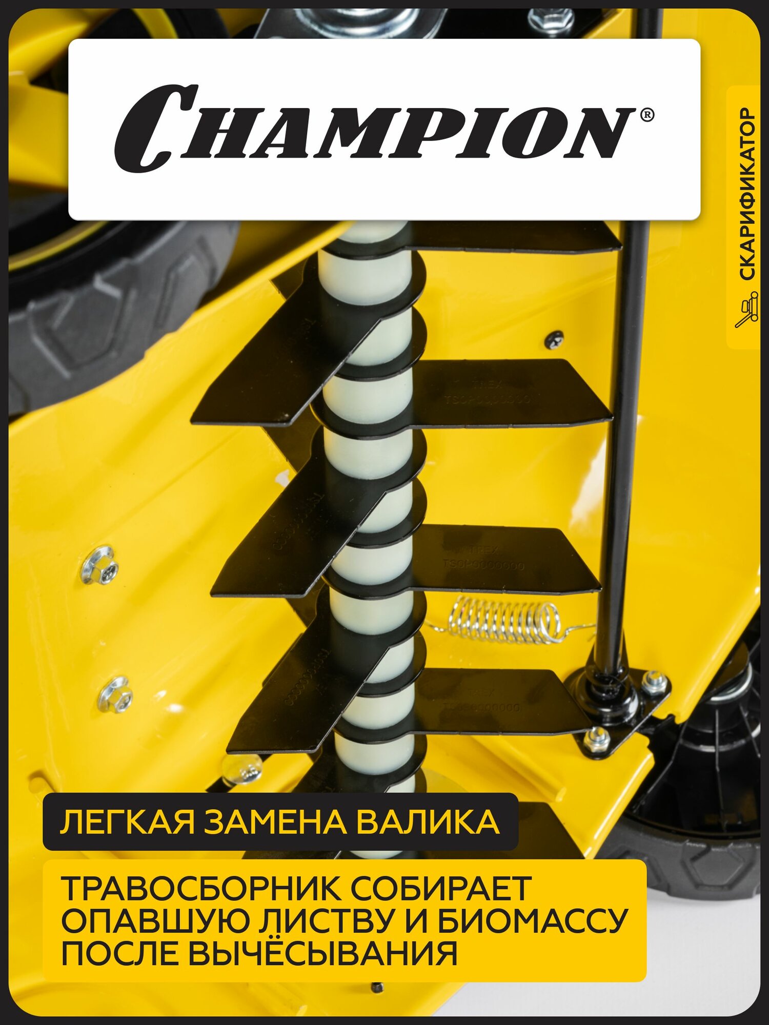 Купить Скарификатор аэратор для газона бензиновый CHAMPION GSC4840, 5,15 кВт, 40 см, с травосборником, с функцией аэратора