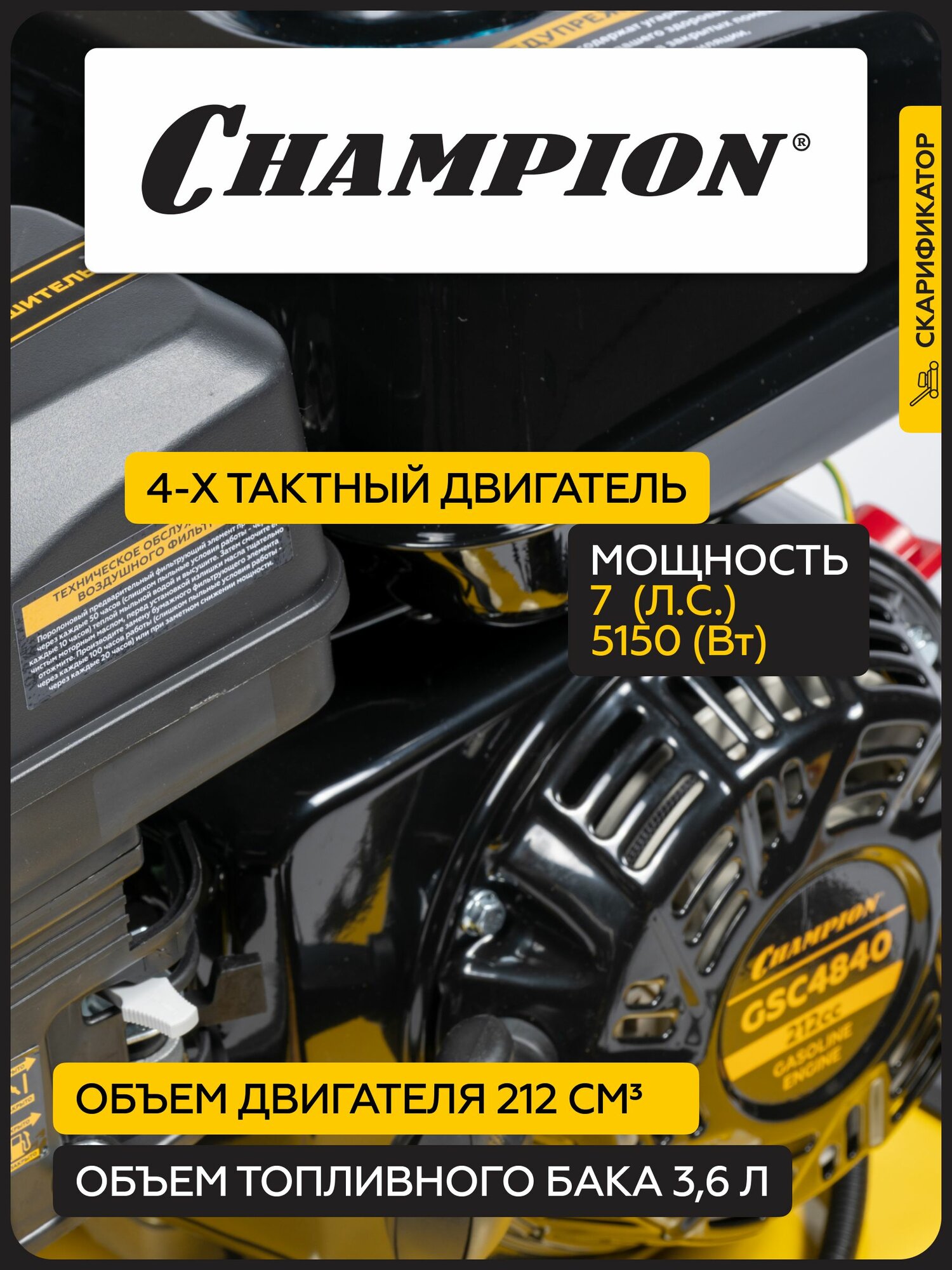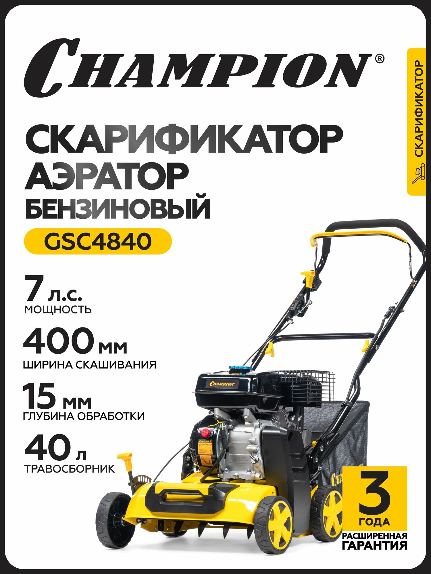 Скарификатор аэратор для газона бензиновый CHAMPION GSC4840, 5,15 кВт, 40 см, с травосборником, с функцией аэратора интересное: