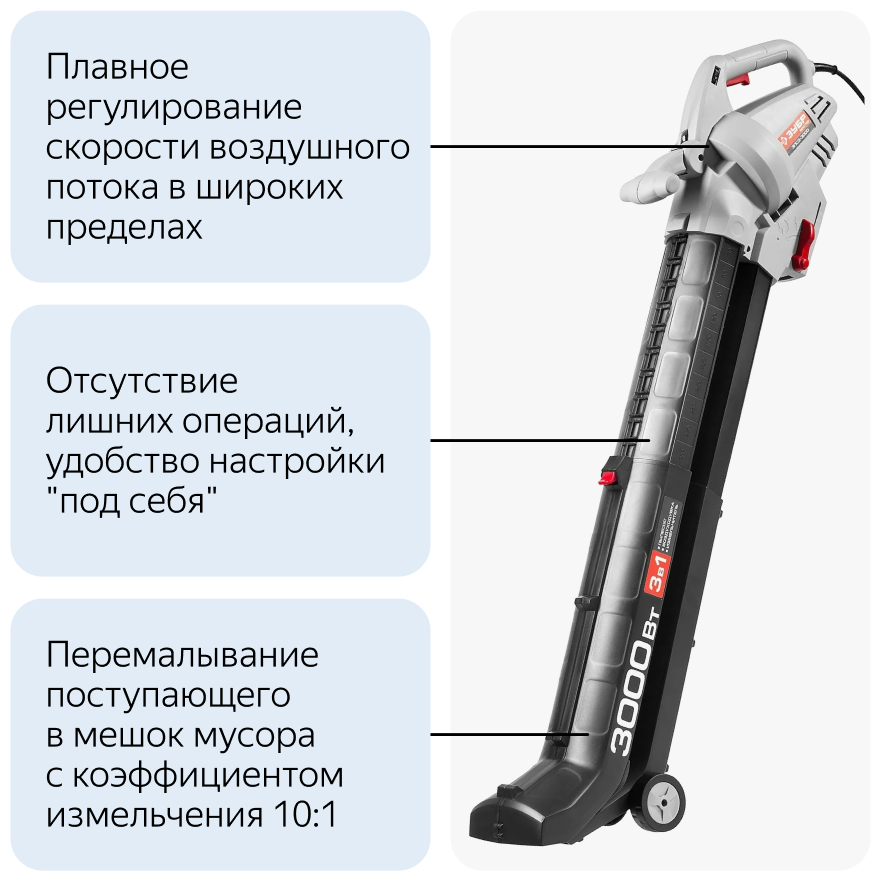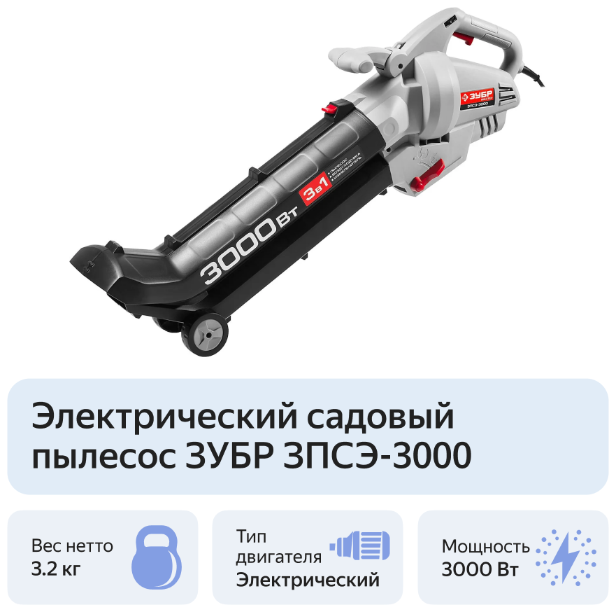 Электрический садовый пылесос ЗУБР ЗПСЭ-3000, 3000 Вт, серый интересное: