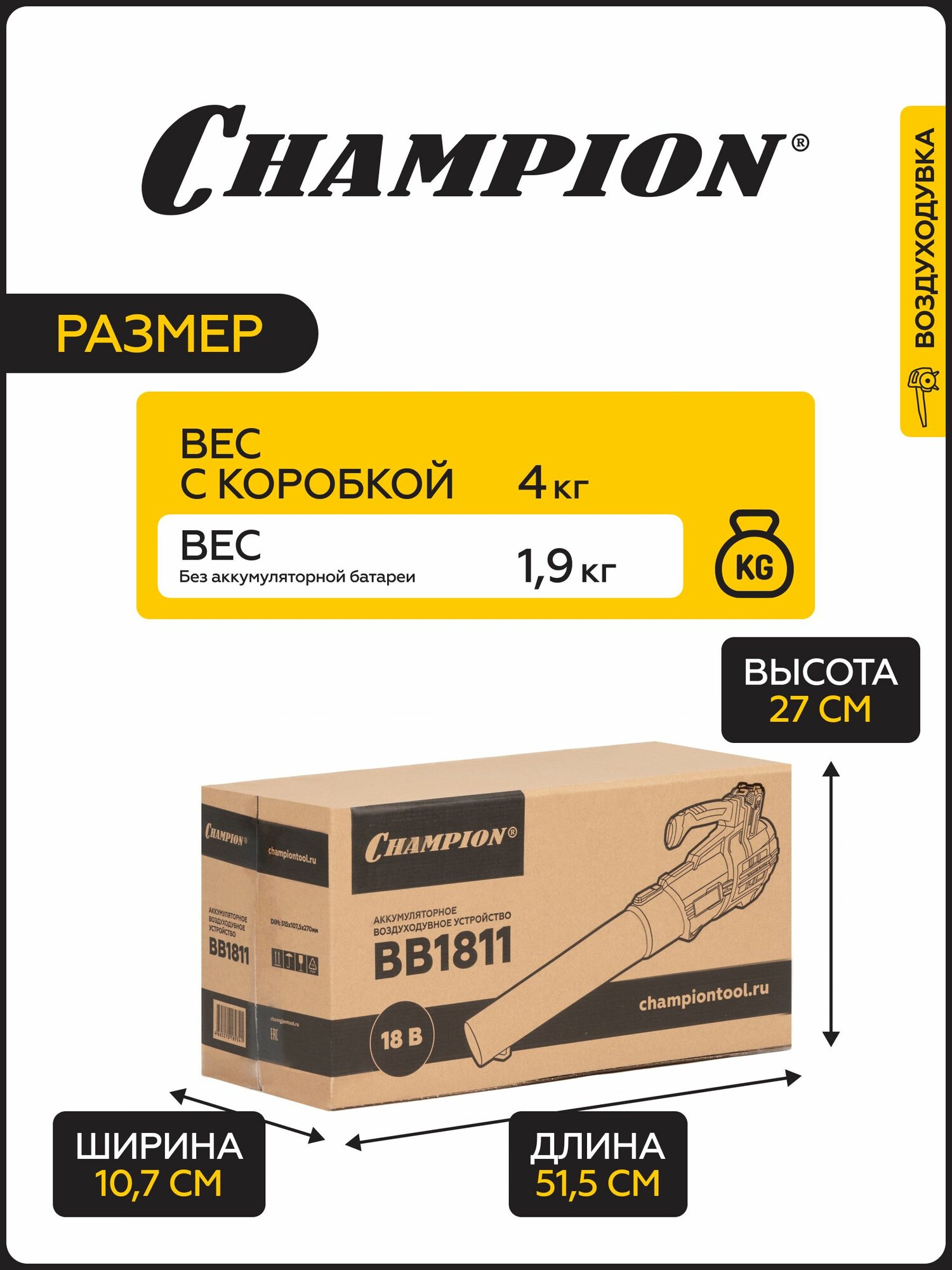 Воздуходувка аккумуляторная CHAMPION BB1821, 18В, 594 м3/ч, 2,4 кг, с АКБ и ЗУ/ воздуходувка аккумуляторная садовая интересное:
