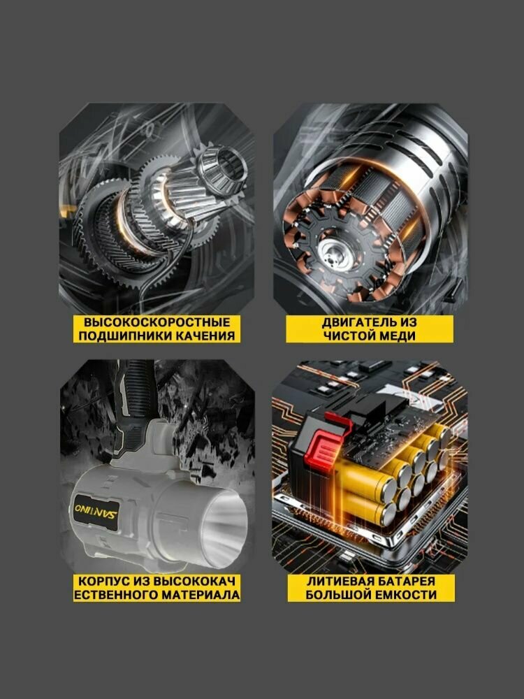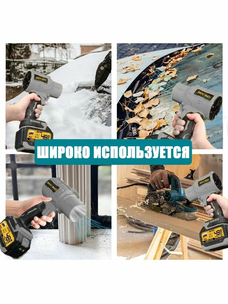 Воздуходувка аккумуляторная мощная/ Бесщеточный Воздуходувка аккумуляторная/SANTINO/1 АКБ/10.0Ач/серый интересное: