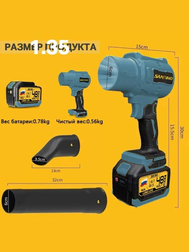 Воздуходувка аккумуляторная мощная/ Бесщеточный Воздуходувка аккумуляторная/SANTINO/1 АКБ/10.0Ач/синий интересное: