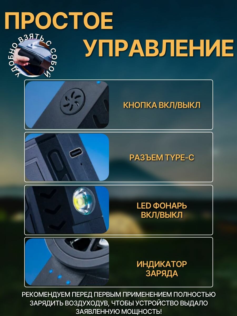 Воздуходувка портативная аккумуляторная для автомобиля + Керамическое покрытие/ турбофен / турбовентилятор 4000мАч 600Вт