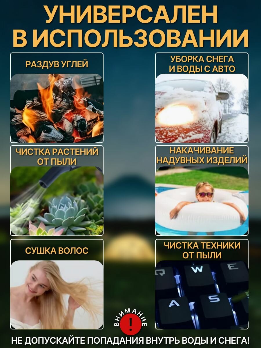 Воздуходувка портативная аккумуляторная для автомобиля + Керамическое покрытие/ турбофен / турбовентилятор 3000мАч 600Вт