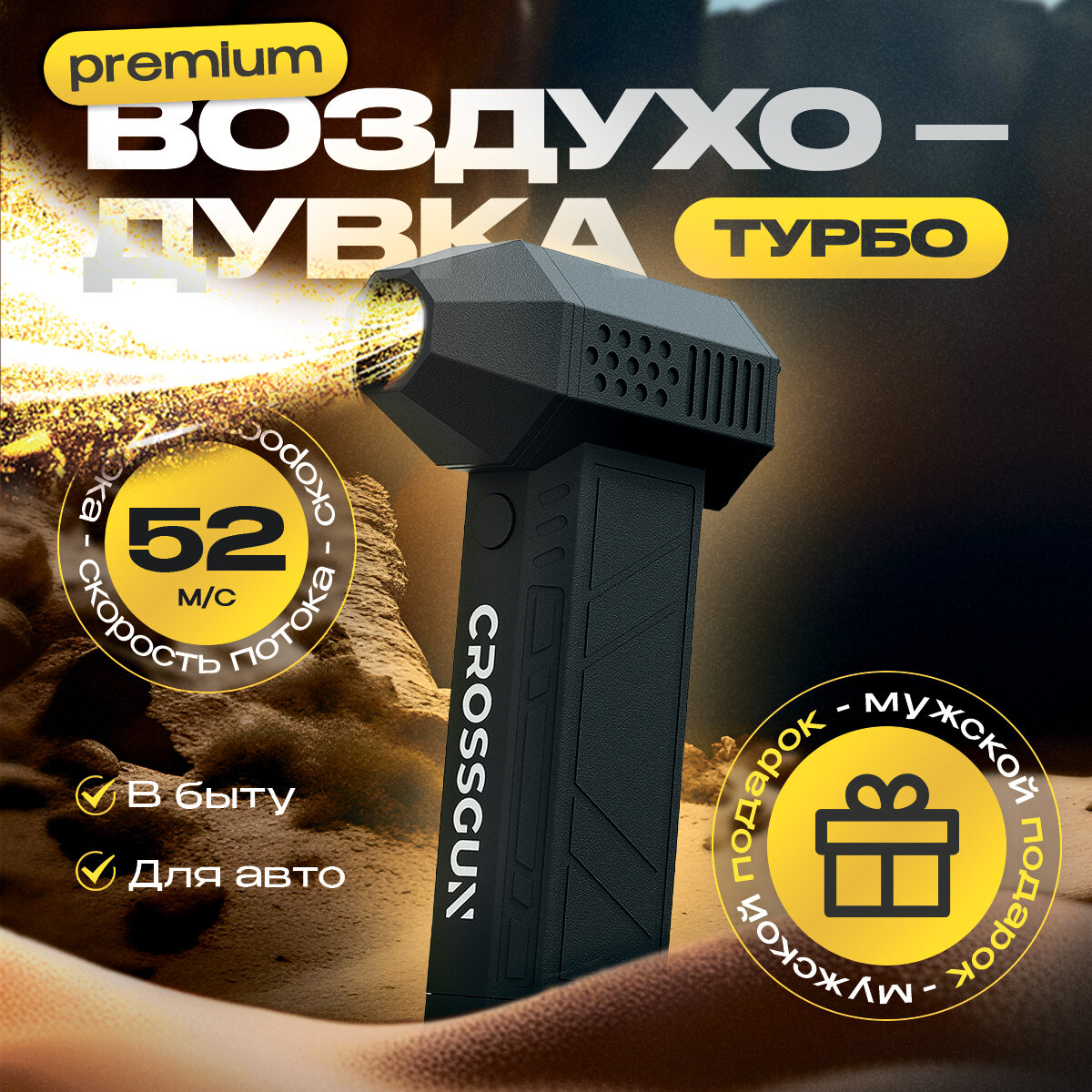 Воздуходувка CROSSGUN, 200Вт, аккумуляторная мощная, обдув для автомобиля и компьютера, Li-Ion, 0.5Ач интересное: