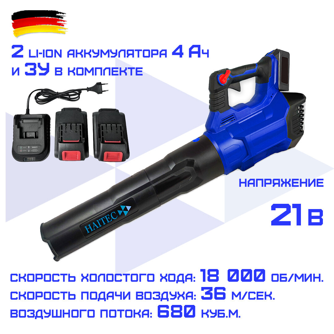 Купить Воздуходувка аккумуляторная HAITEC HT-ALB680/4, 2 Li-ion аккумулятора + з/у 21 В, скорость воздуха 36м/с